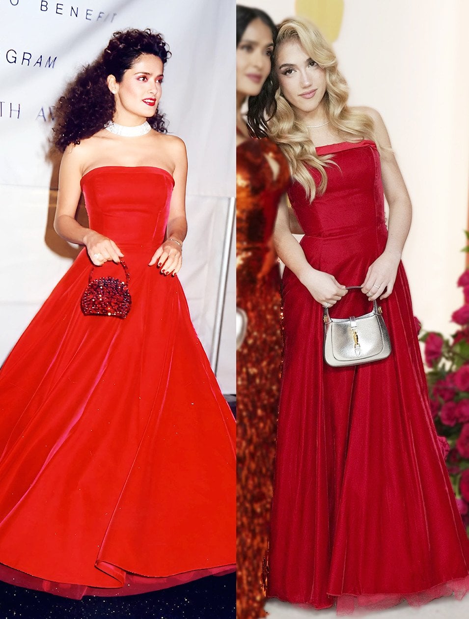 Попри те, що Валентина донька мільярдера Франсуа-Анрі Піно, вона вирішила теж заглянути до шафи мими. Дівчина прийшла на церемонію вручення премії «Оскар» зі своєю мамою і одягла її червону сукню. Автором цього вбрання є американський дизайнер Айзек Мізрагі (Isaac Mizrahi) і вперше Сальма одягла його 1997 року на галаконцерт Fire & Ice, який відбувався у Голлівуді.