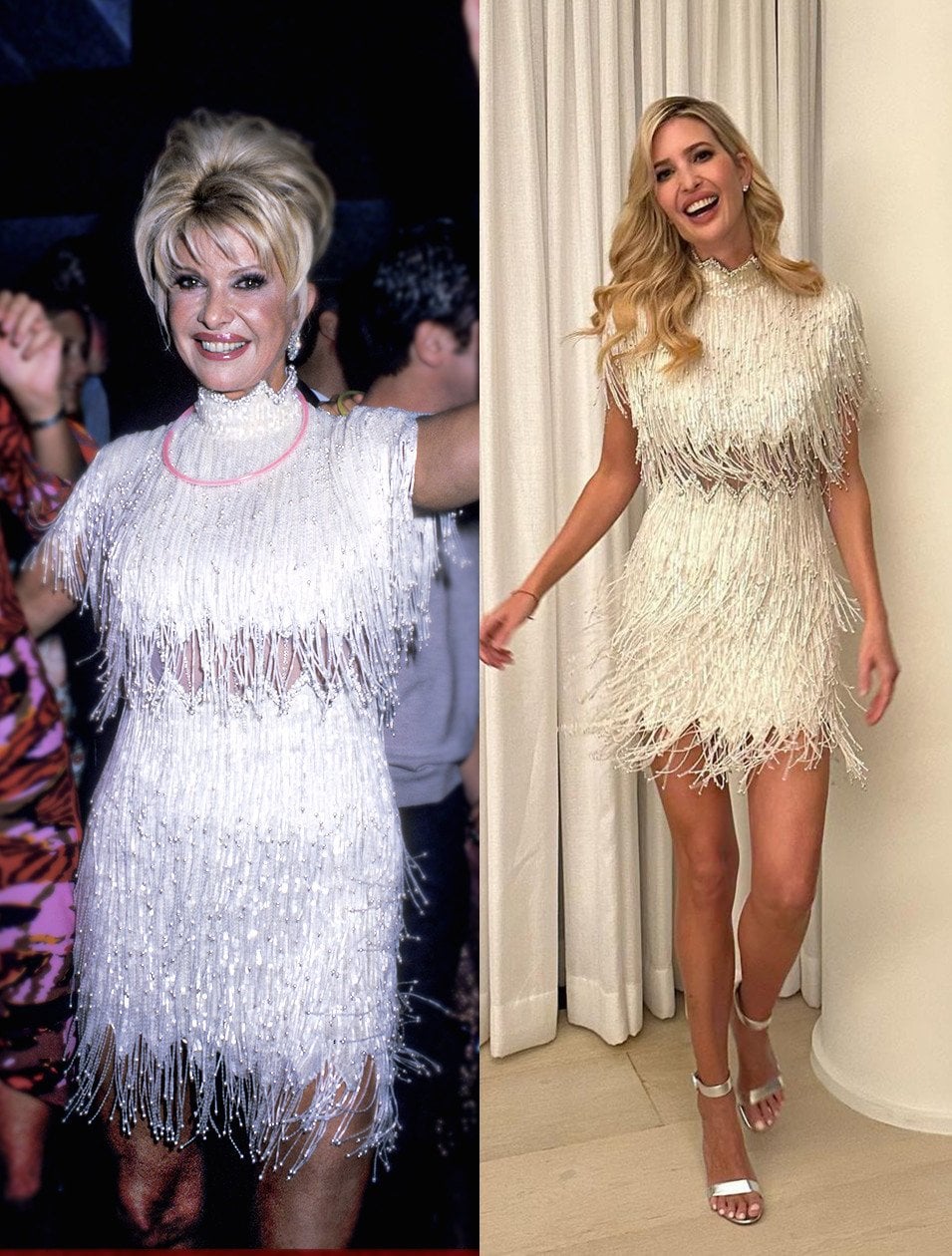 Донька президента США неодноразово демонструвала цю гламурну сукню своєї мами Івани Трамп від дизайнера Боба Маккі, яку та носила на вечірці 24 квітня 2002 року.