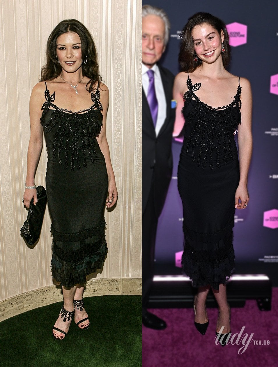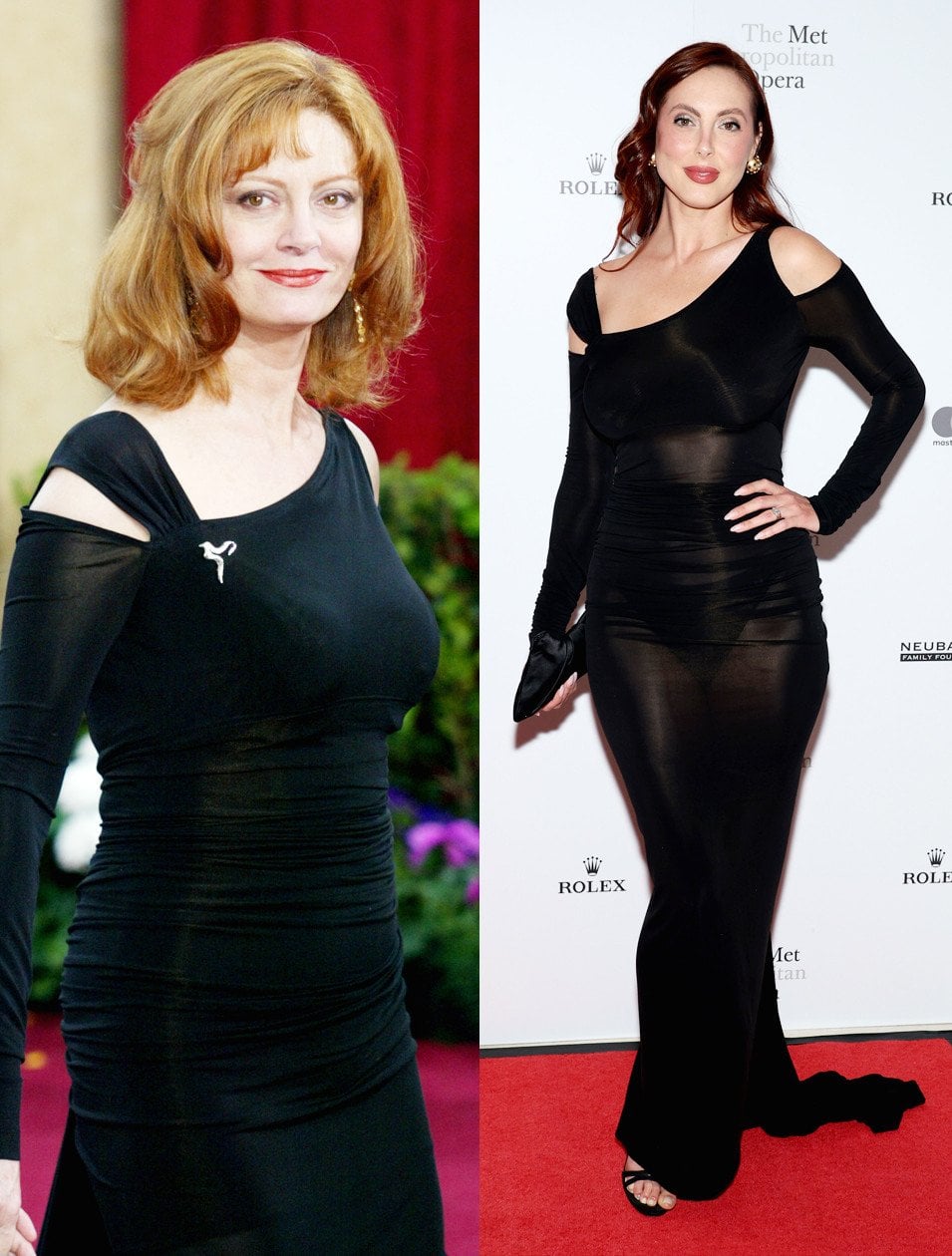 Єва Амуррі позичила прозору сукню від Donna Karan з вирізами, яку її мама Сьюзен Сарандон одягала на церемонію вручення «Оскара» 2003 року.