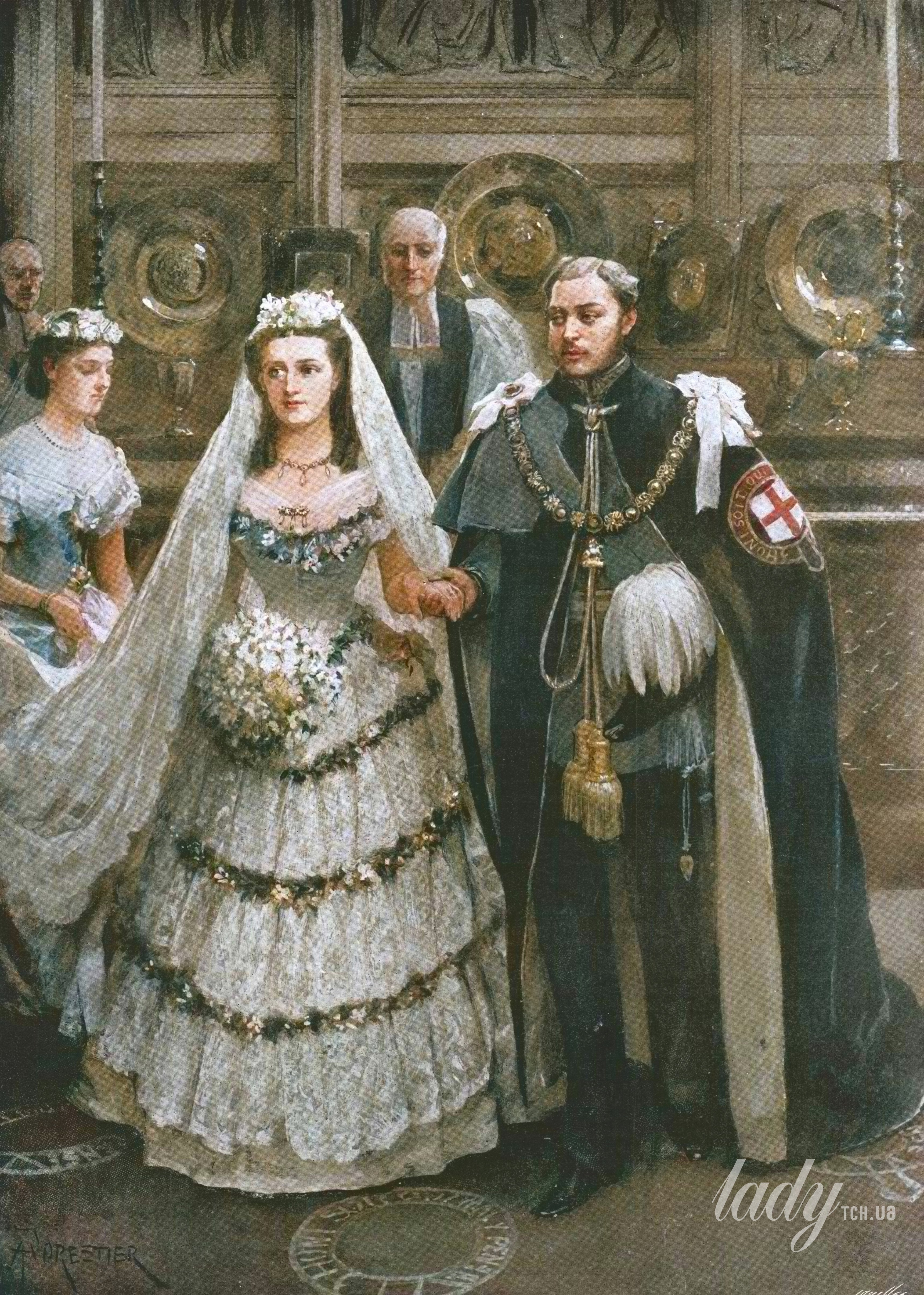 У березні 1863 року відбулося весілля сина королеви Вікторії — Альберта Едварда, принца Уельського (пізніше короля Едуарда VII), та принцеси Александри Данської (пізніше королеви). Це була особлива подія, адже ця пара мала у майбутньому стати королем і королевою, тому і сукня для нареченої мала бути не лише розкішною, а й особливою.