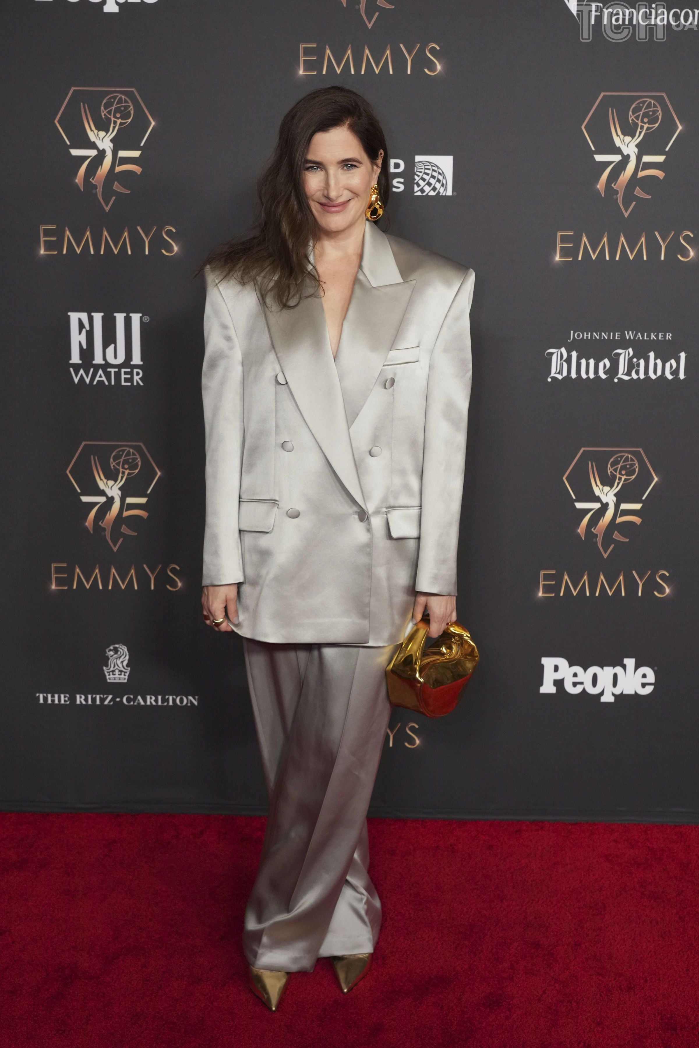 На захід Primetime Emmy Performer Nominees Celebration вона обрала розкішний костюм фасону оверсайз у сірому відтінку. Вбрання акторки було від Magda Butrym.