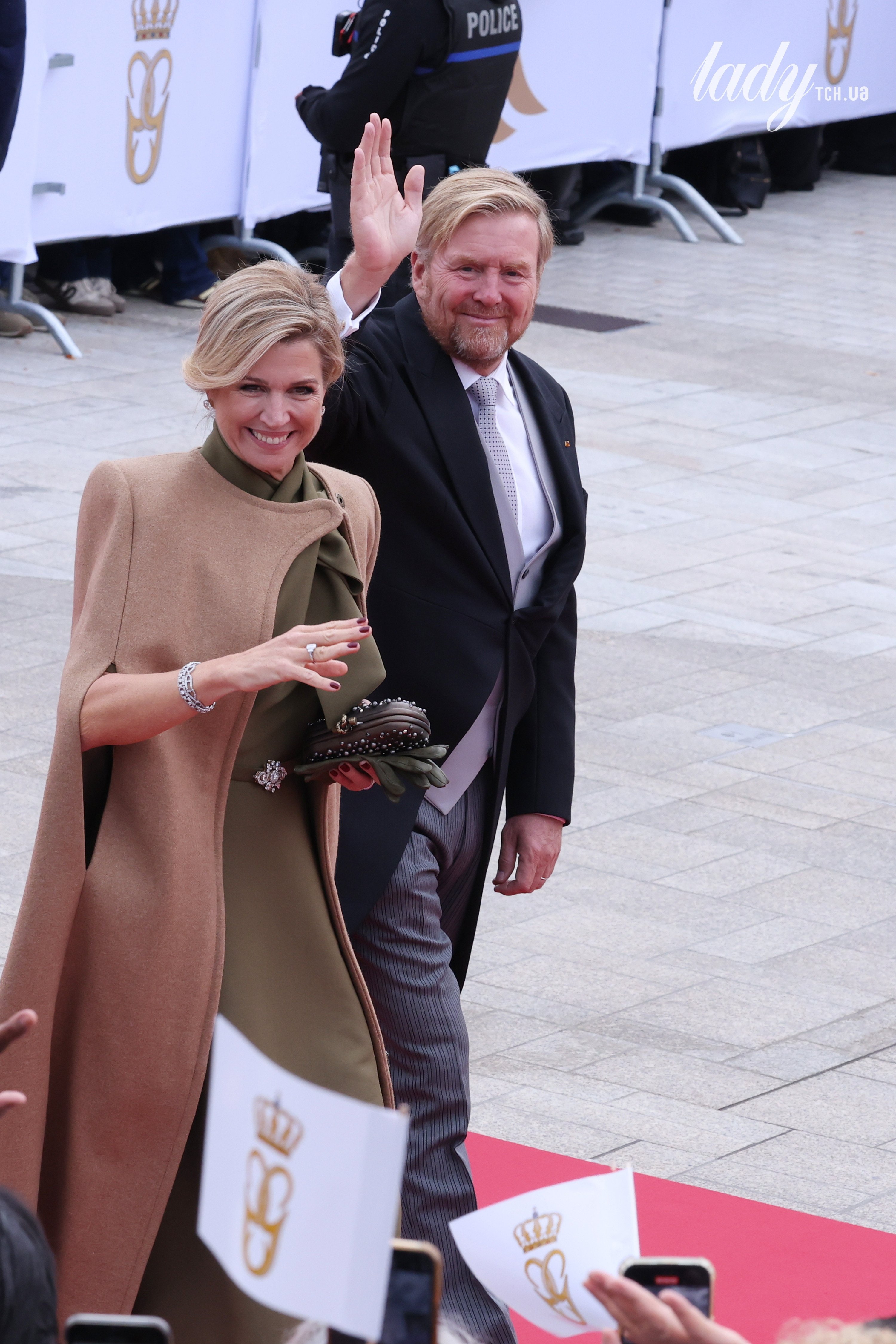 Королева Нідерландів одягла вбрання з бантом на церемонію приведення до присяги великого герцога Гійома та великої герцогині Стефанії Люксембурзьких. Того дня на ній була сукня болотяно-зеленого кольору з бантом на грудях від Claes Iversen, і цей образ, до речі, нагадав нам деякі вбрання принцеси Уельської Кейт. До сукні Максима ще підібрала пальто верблюжого кольору без коміра теж від бренду Сlaes Iversen, шкіряний клатч до тону від Bottega Veneta з перлиним обробленням і туфлі-човники Gianvito Rossi з оливково-зеленої замші.
