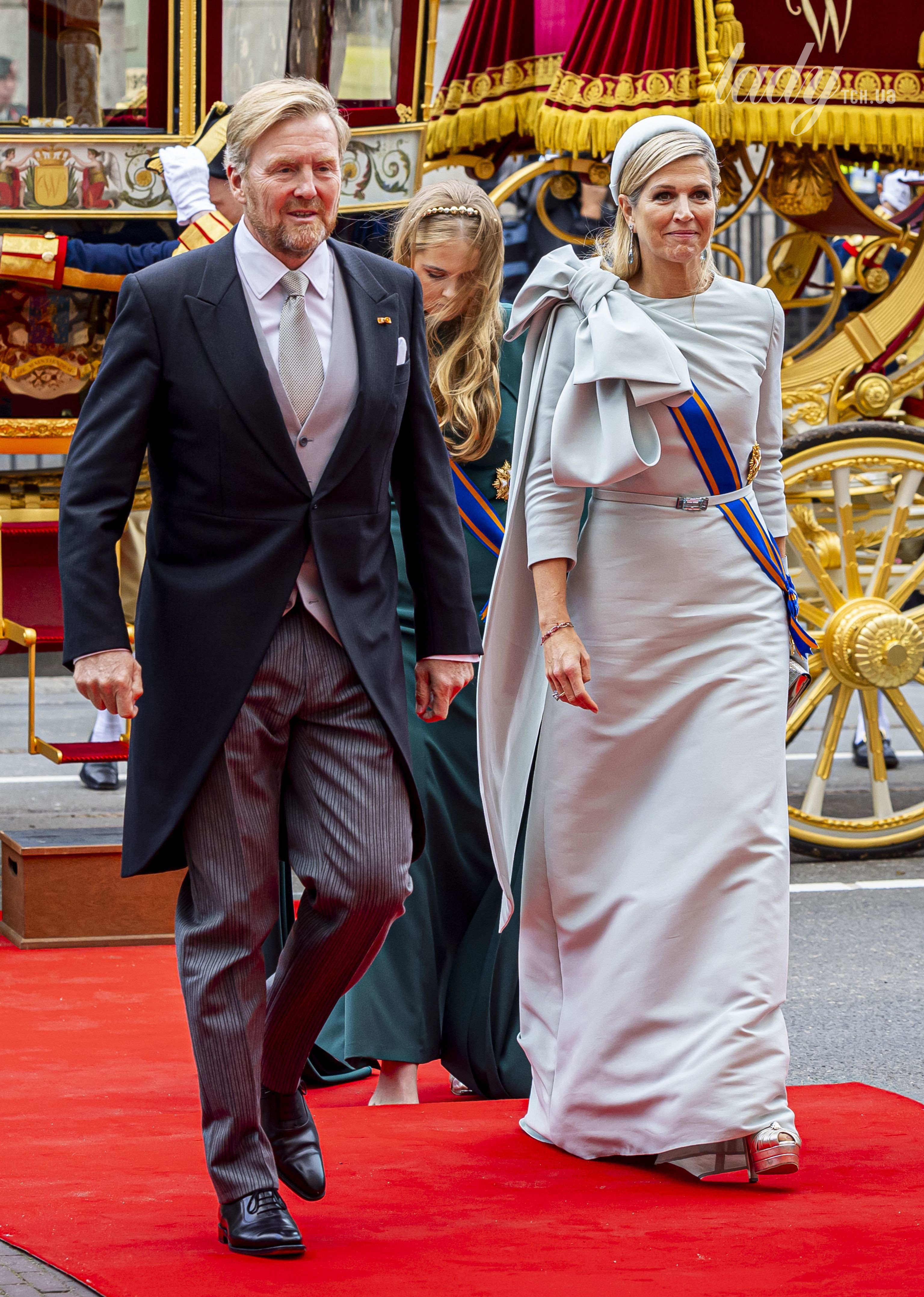 Королева Максима обожнює великі аксесуари, і бантів це теж стосується. На відкритті щорічного парламентського року у вересні 2024 року вона з’явилася у світло-блакитній максісукні з бантом на плечі від Claes Iversen, у руках тримала клатч Dior, а взута була в босоніжки на платформі Aquazzura.