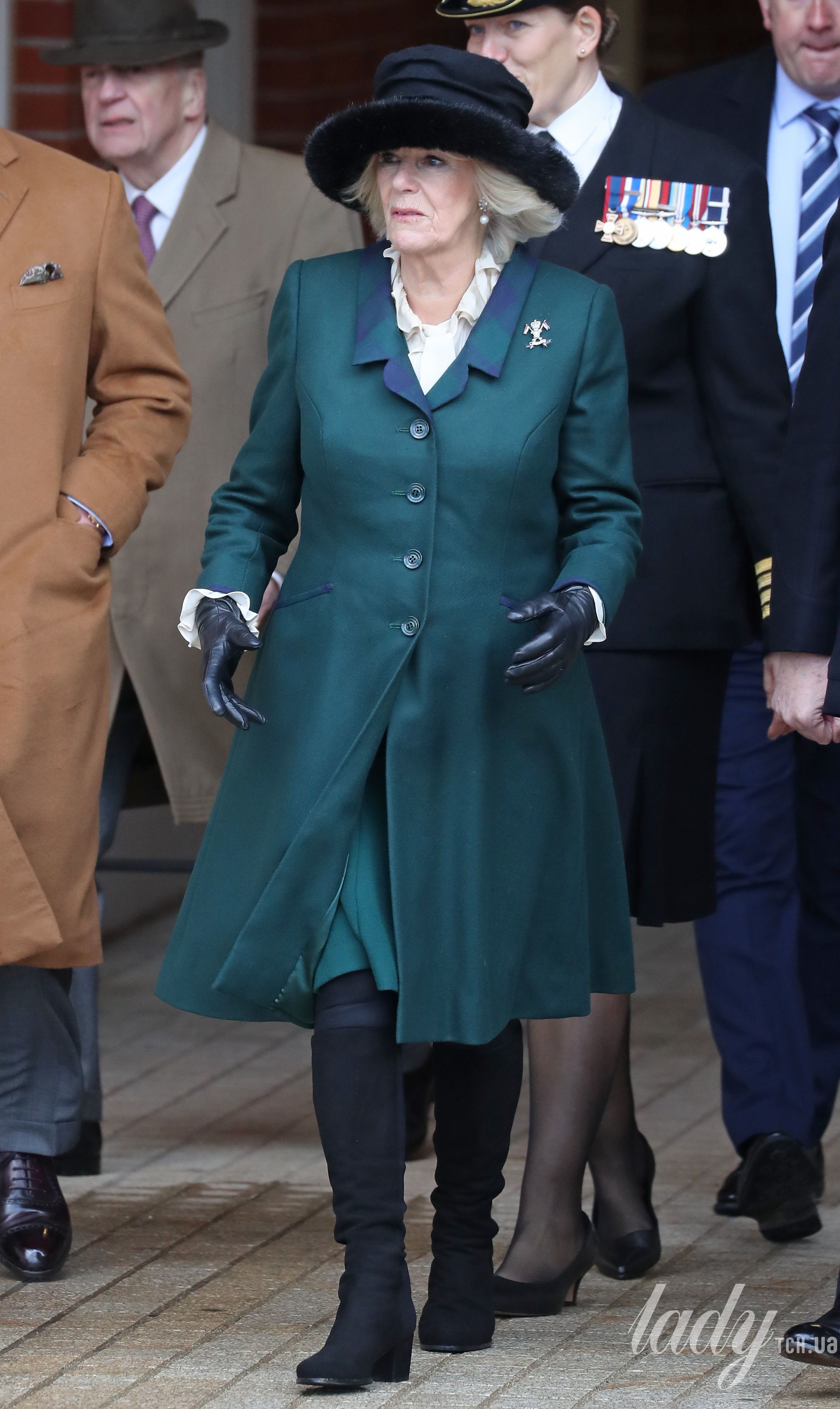 Герцогиня Корнуольська приїхала до центру в зеленому пальті з картатим підкладом, під яким була біла блуза з рюшами і спідниця, підібрана за тоном. Свій аутфіт герцогиня доповнила шкіряними рукавичками і високими замшевими чобітьми, а також чорною хутряною шапкою.