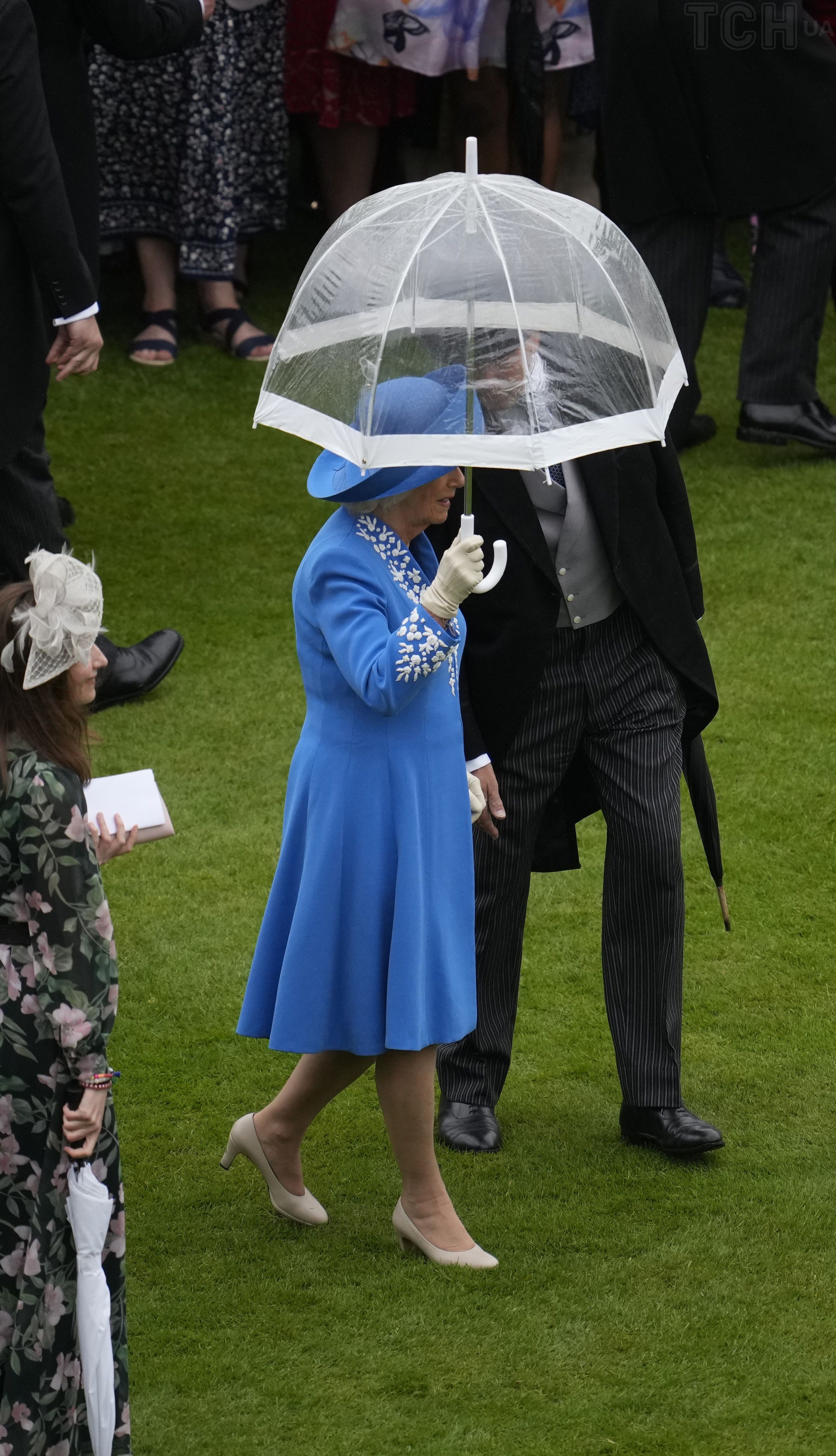 Королева Камілла, дружина короля Чарльза III, також використовує цей лайфгак і бере із собою на заходи прозору парасольку.