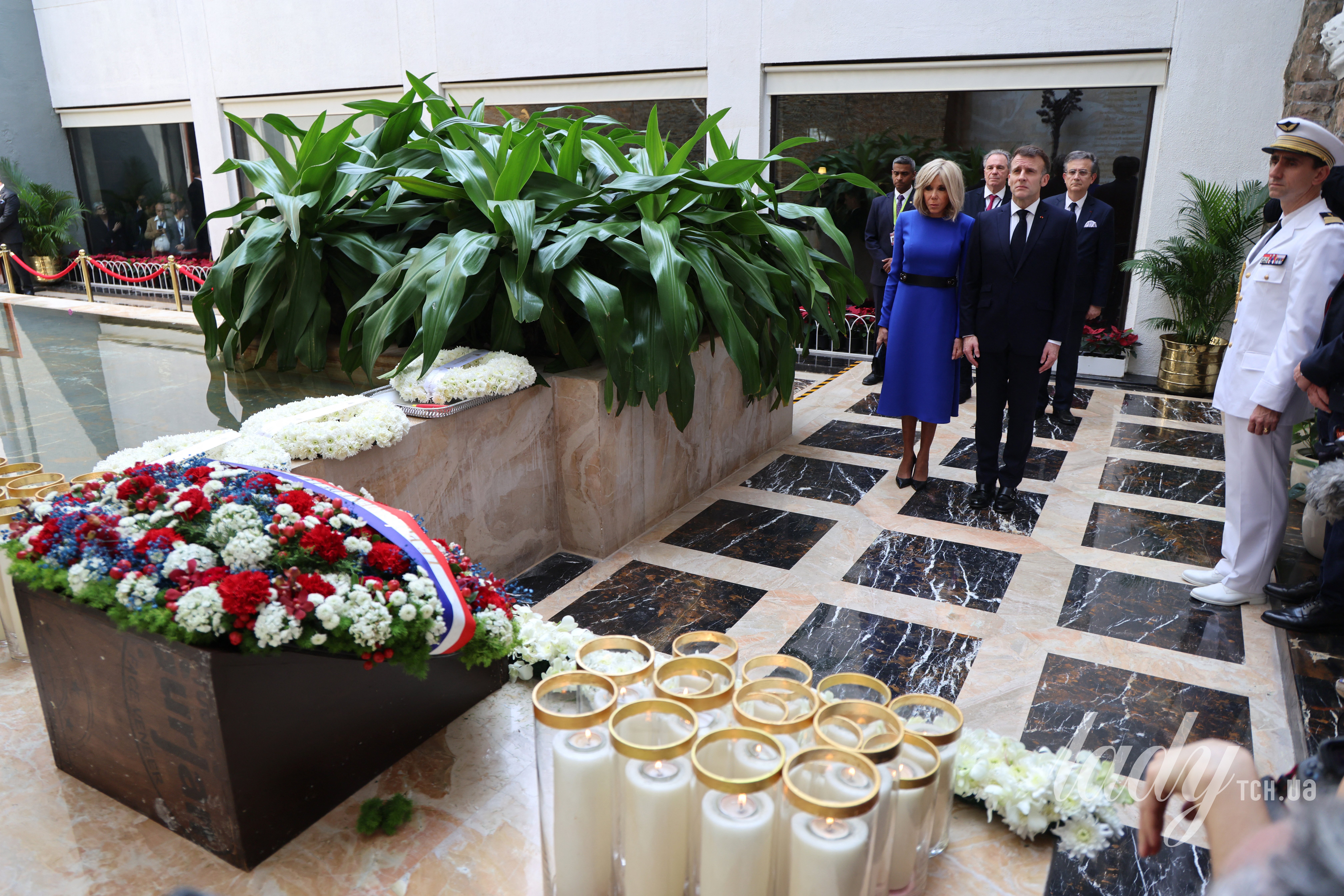Президент Франції Еммануель Макрон і його дружина Бріжит Макрон у межах свого офіційного візиту до Індії взяли участь у заході, на якому вшанували пам’ять жертв терористичних атак 2008 року у готелі Taj Mahal Palace у Мумбаї.