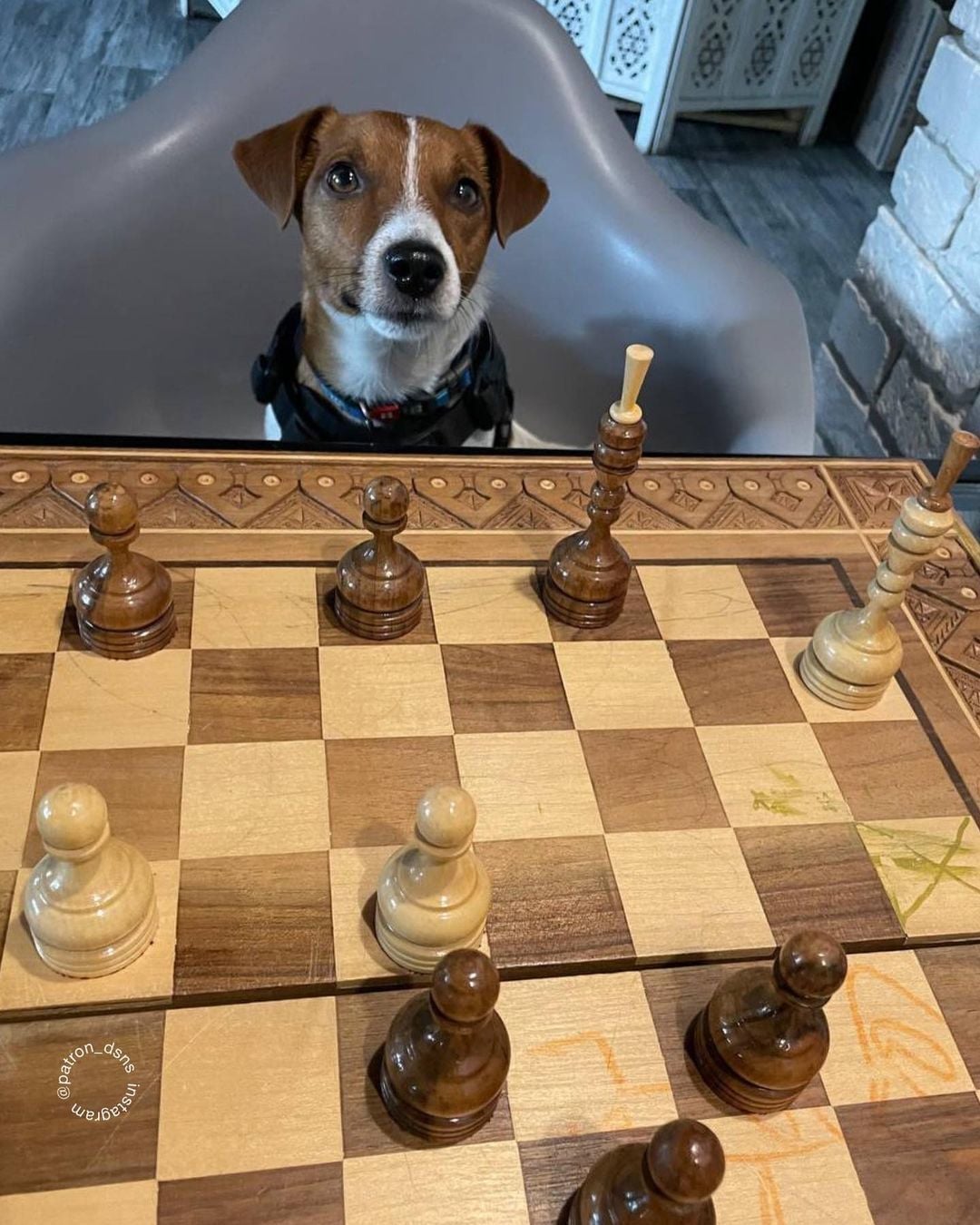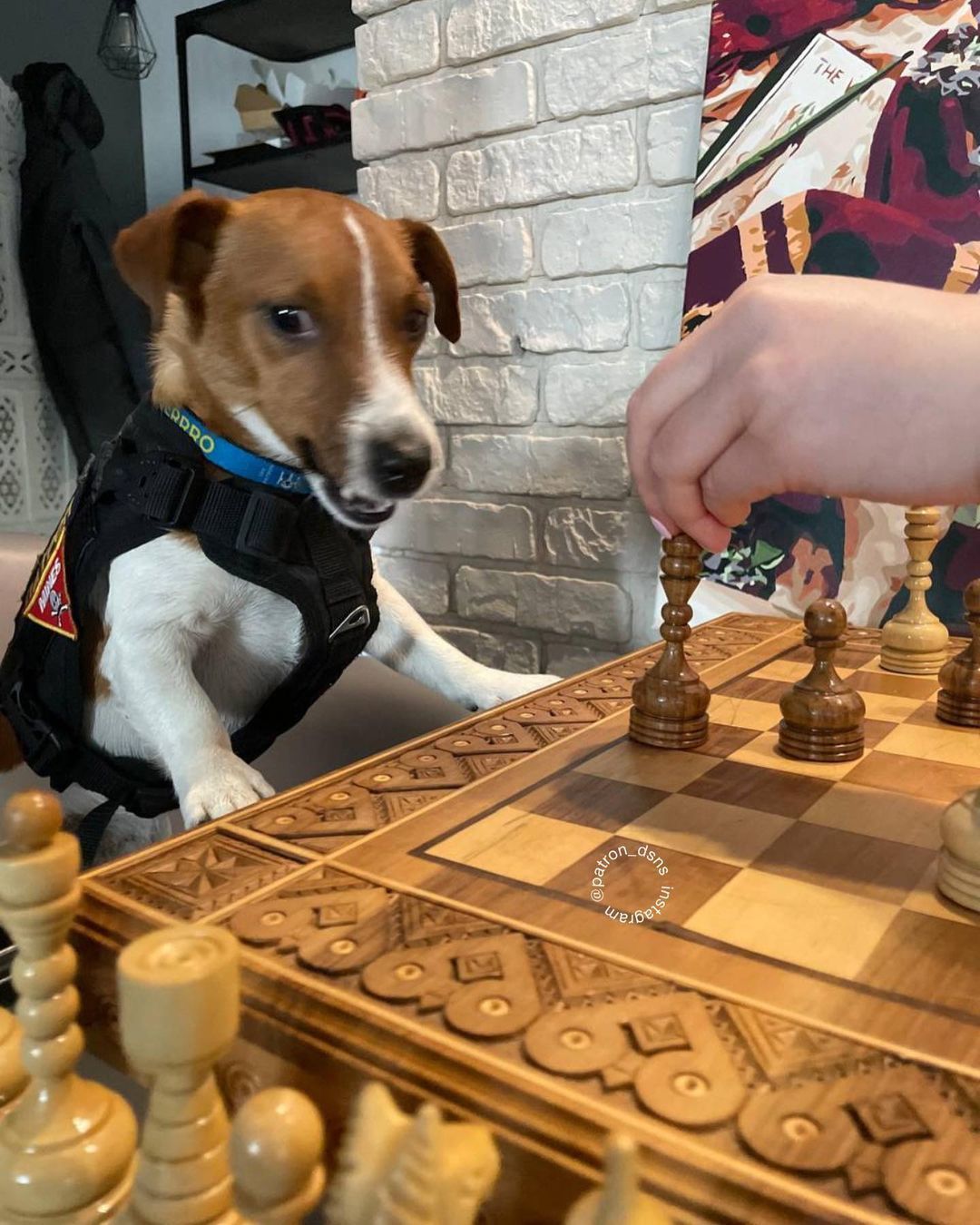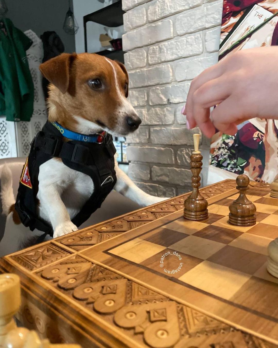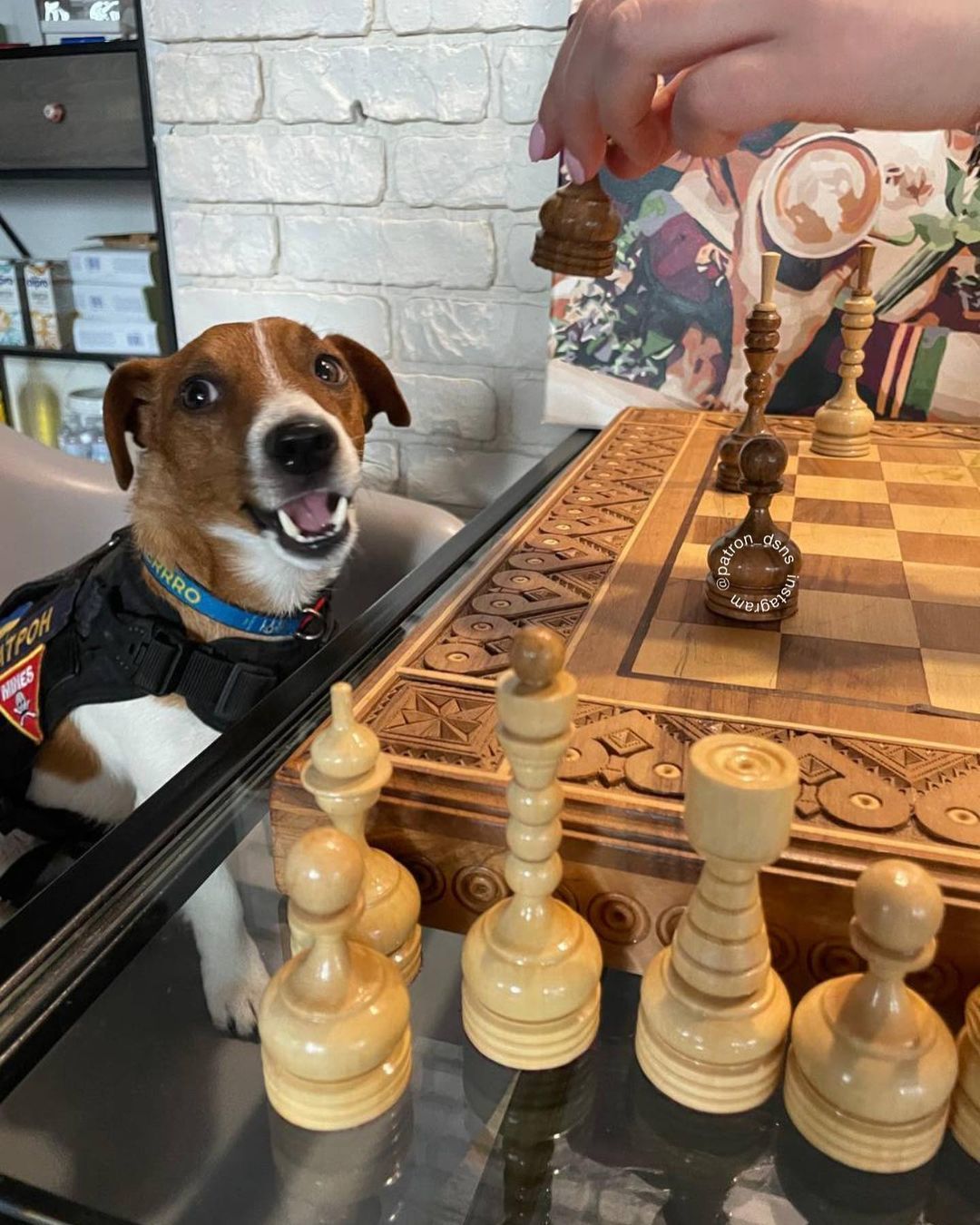 "Цугцванг вам, вороженьки, а не Україна": пес Патрон пограв у шахи