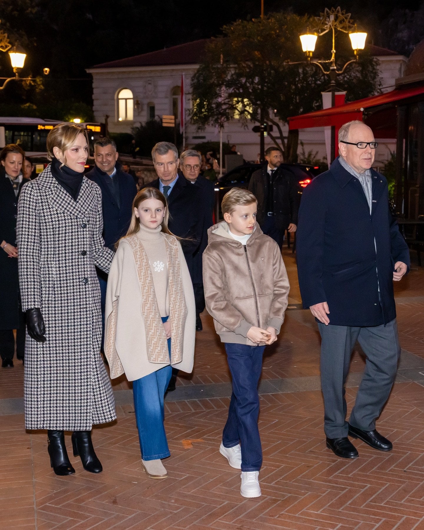 Князь Альбер II та княгиня Шарлін у супроводі своїх дітей — принца Жака та принцеси Габріелли — офіційно запалили міські різдвяні вогні на великій ялинці на ринковій площі Кондамін.