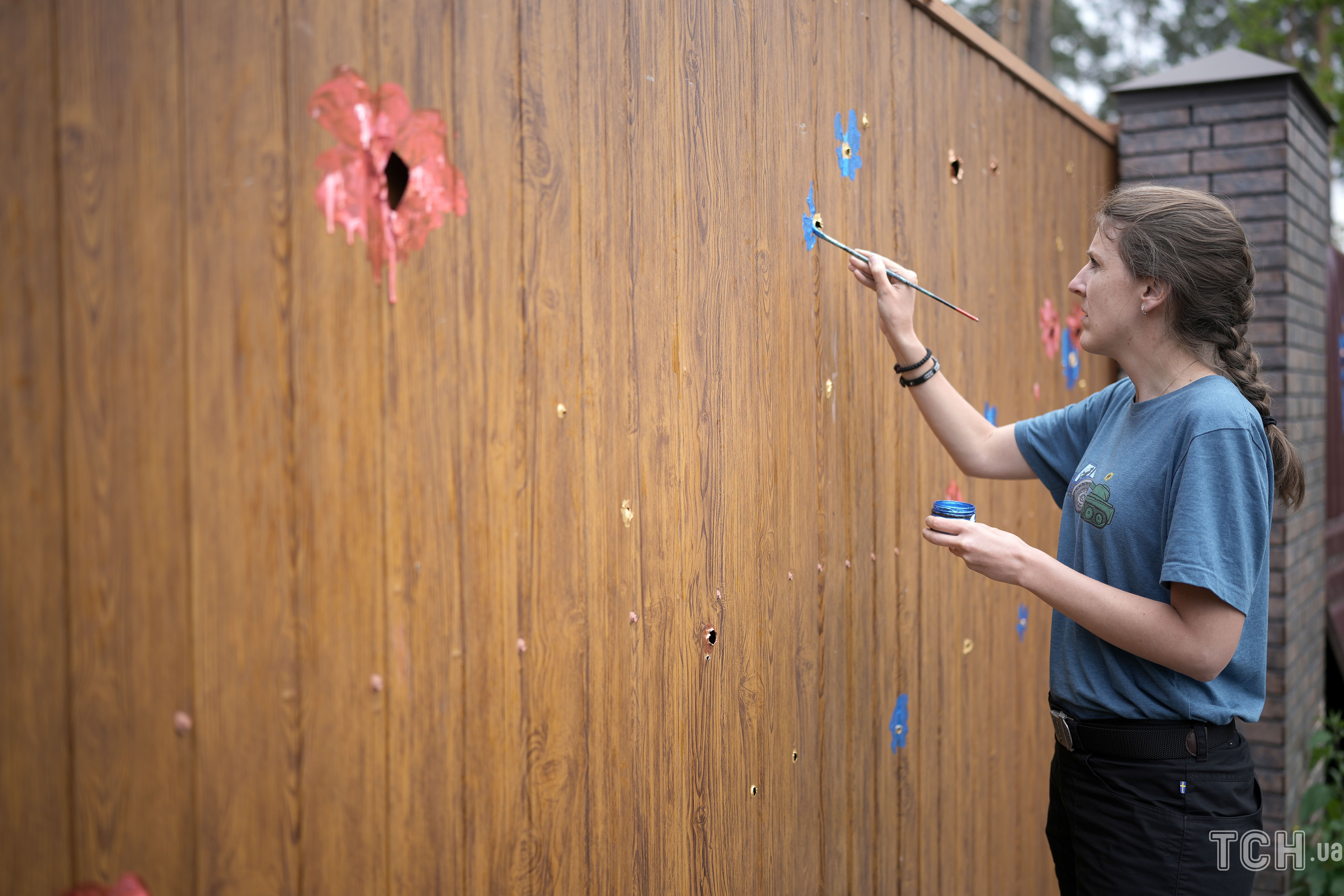 "Він сказав мені, що хоче піти, тому що в цьому місті більше не залишилося радості. Він бачить лише діри від куль у паркані, які нагадують йому про втрату", - розповіла канадка. Саме історія цього чоловіка надихнула Іванку розпочати "стирати" сліди від куль у паркані, перетворюючи їх на квіти.
