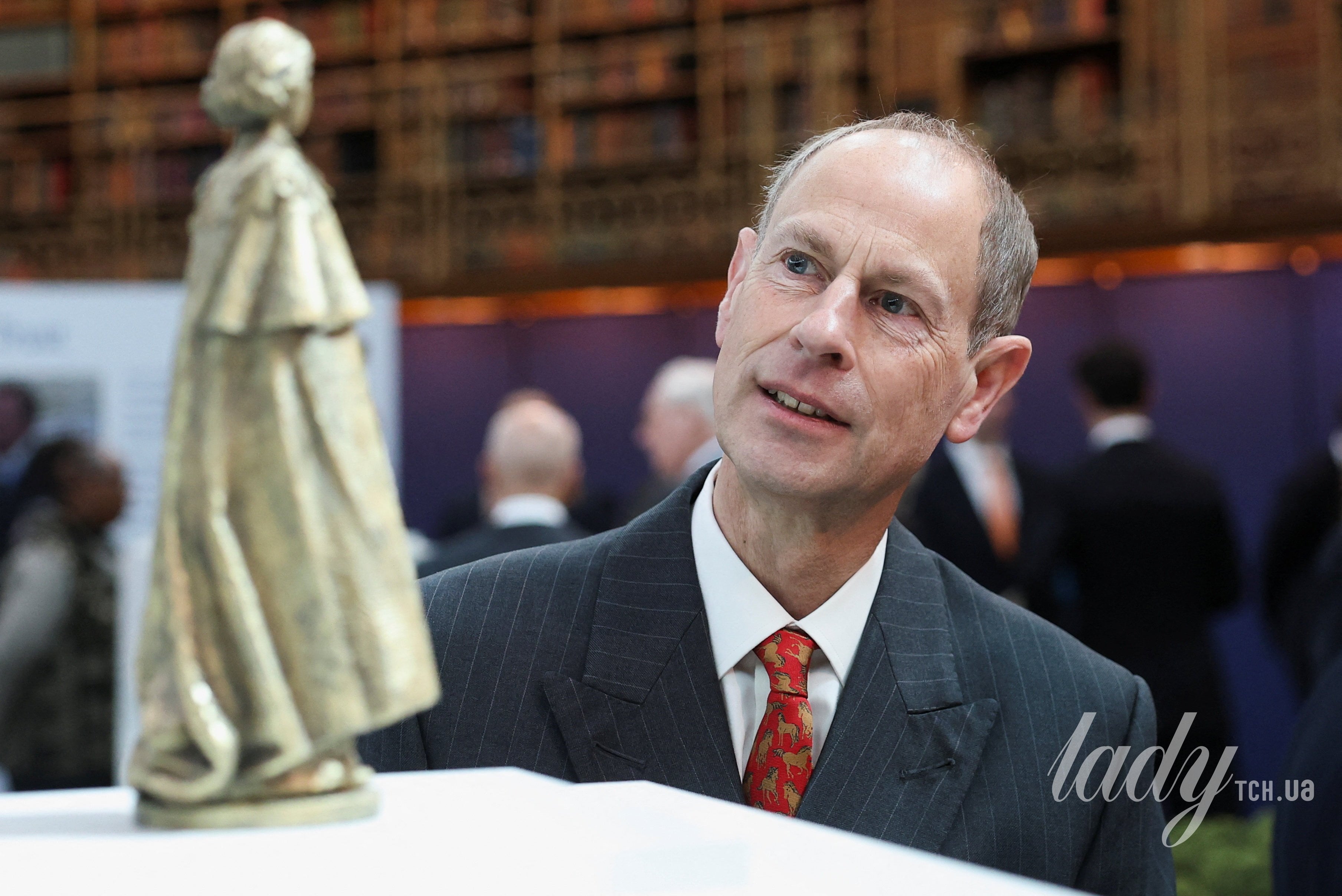 Принц Едвард, син королеви, також підібрав до образу елемент, який відображав пристрасть його матері до коней. На Едварді була червона краватка в принт цієї тварини та класичний смугастий костюм із сорочкою.