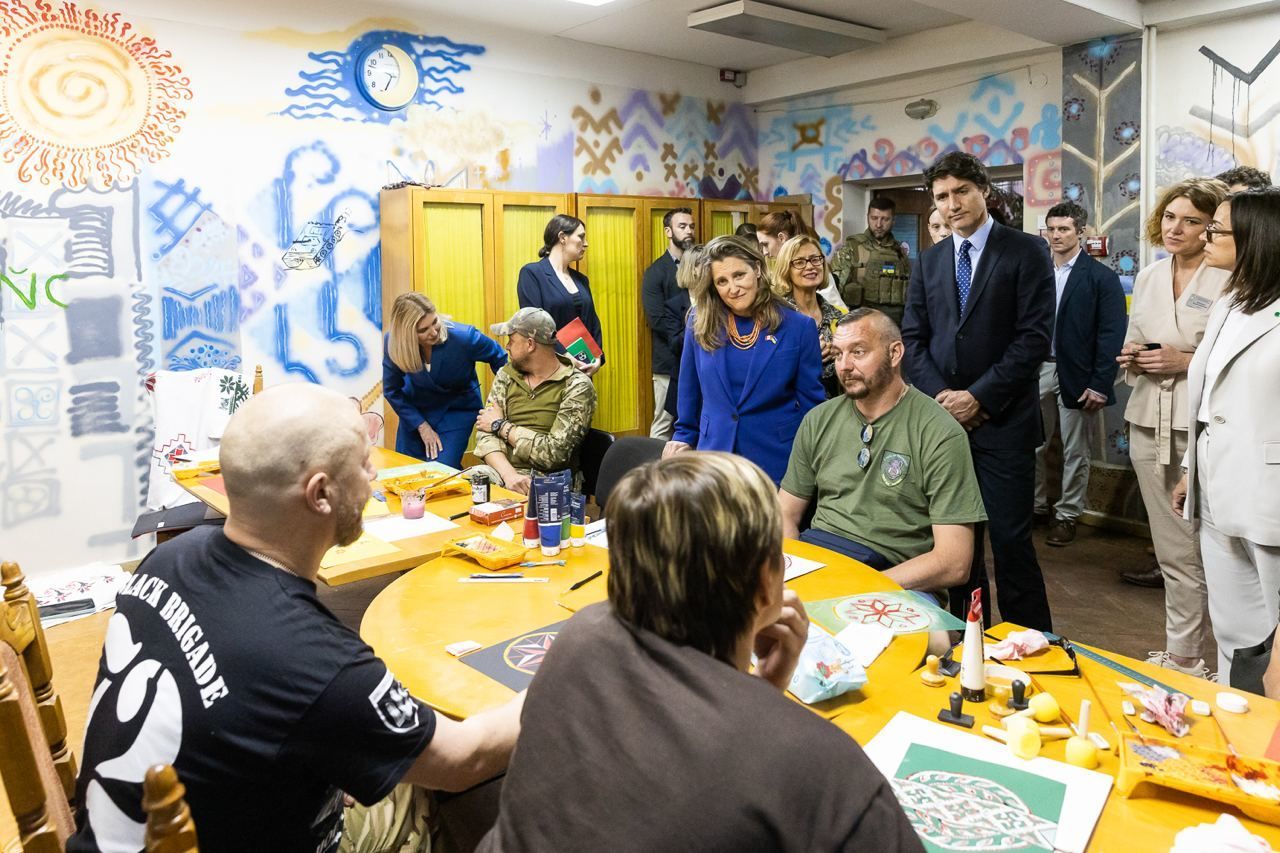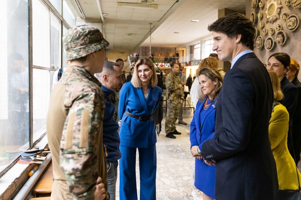 Олена Зеленська зустрілася з прем'єр-міністром Канади Джастіном Трюдо, який з неоголошеним візитом приїхав до України. Разом вони відвідали реабілітаційний центр "Лісова поляна", а також обговорили майбутнє медичне партнерство між закладом і центрами Канади, які спеціалізуються на роботі з ветеранами з посттравматичними стресовими розладами.