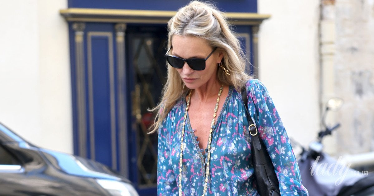 Кейт Мосс у сукні в стилі бохо і ботильйонах на шпильках прогулялася Парижем