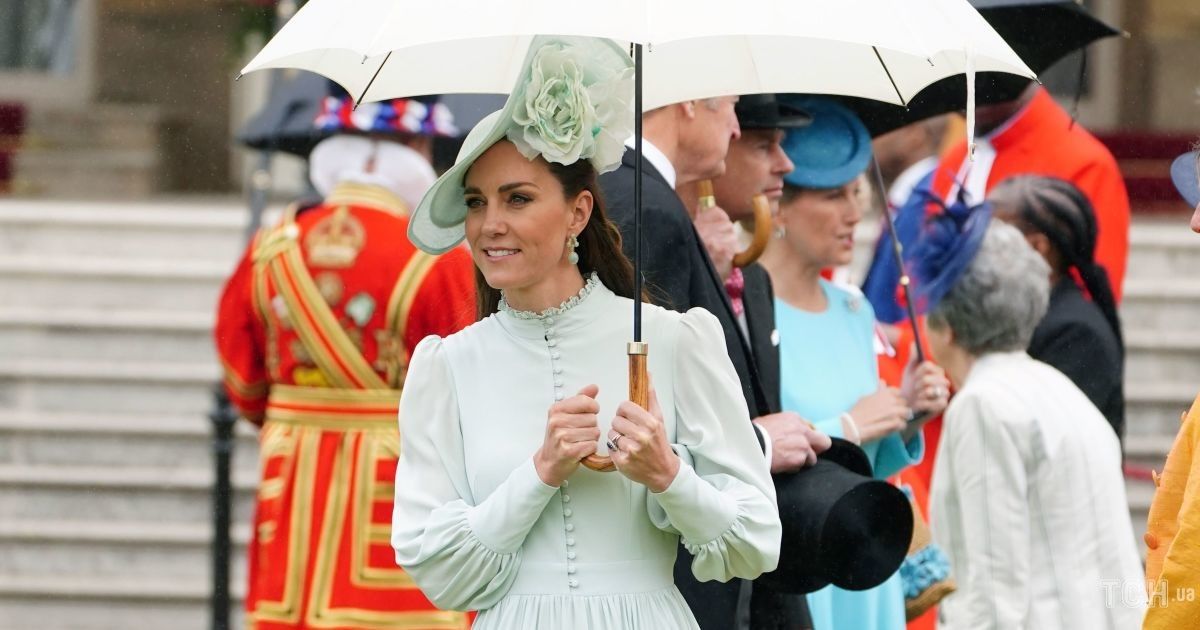Для своєї появи на публіці герцогиня Кембріджська обрала ніжно-блакитний образ, в якому поєднала сукню з довгими рукавами та ґудзиками спереду, замшеві туфлі-човники Jimmy Choo, оригінальний капелюх із квіткою від Філіп Трейсі та сережки з аквамарином від Carousel.