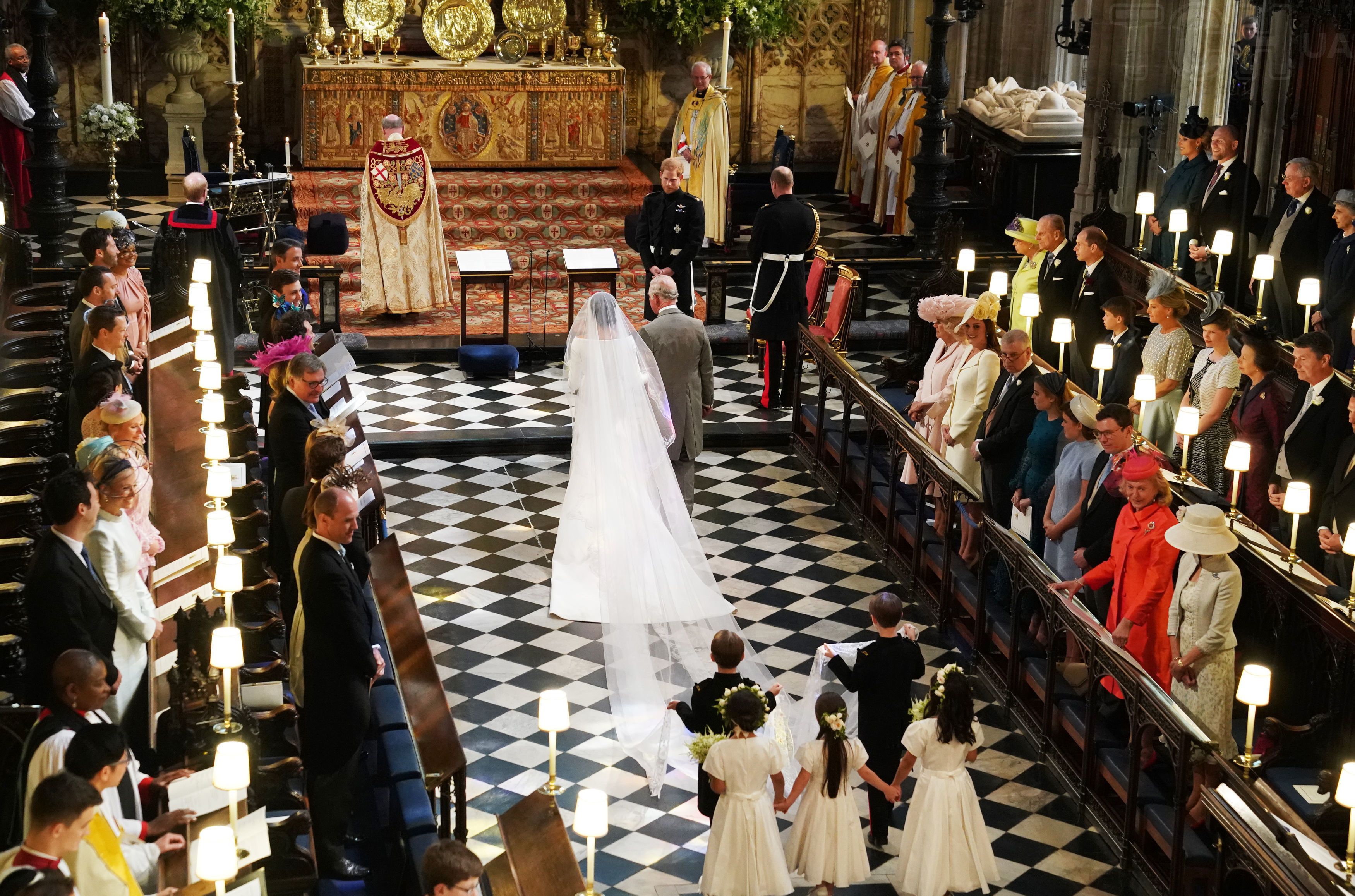 Меган Маркл йде до вівтаря з королем Чарльзом на своєму весіллі з принцем Гаррі, 2018 рік / © Getty Images