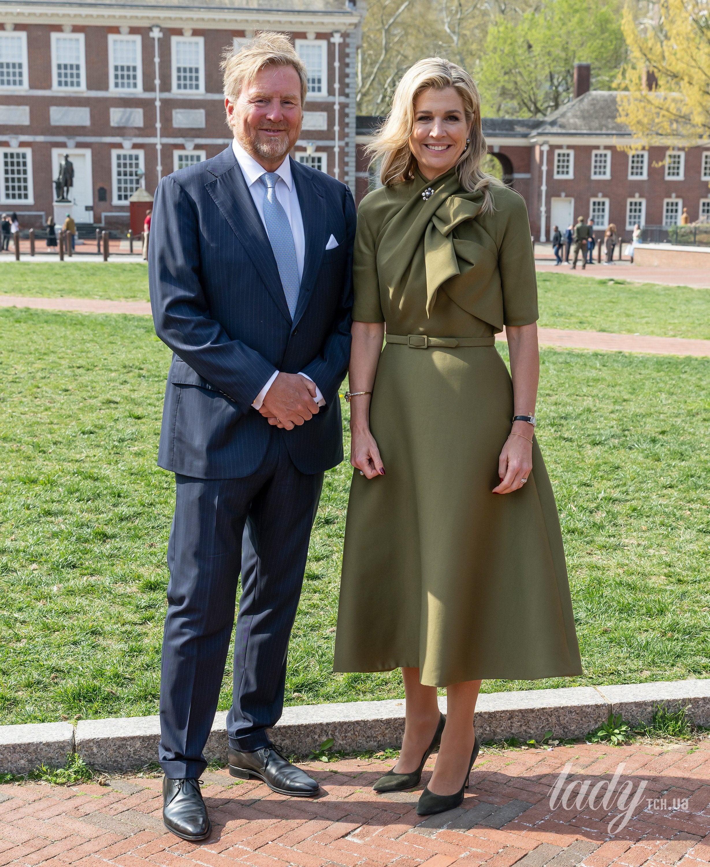 Під час поїздки до Америки королева Нідерландів продемонструвала ще кілька образів. На зустрічі з президентським подружжям Трампів вона сяяла в помаранчевій сукні Claes Iversen, а на іншій зустрічі продемонструвала зелене вбрання від цього ж данського бренду.
