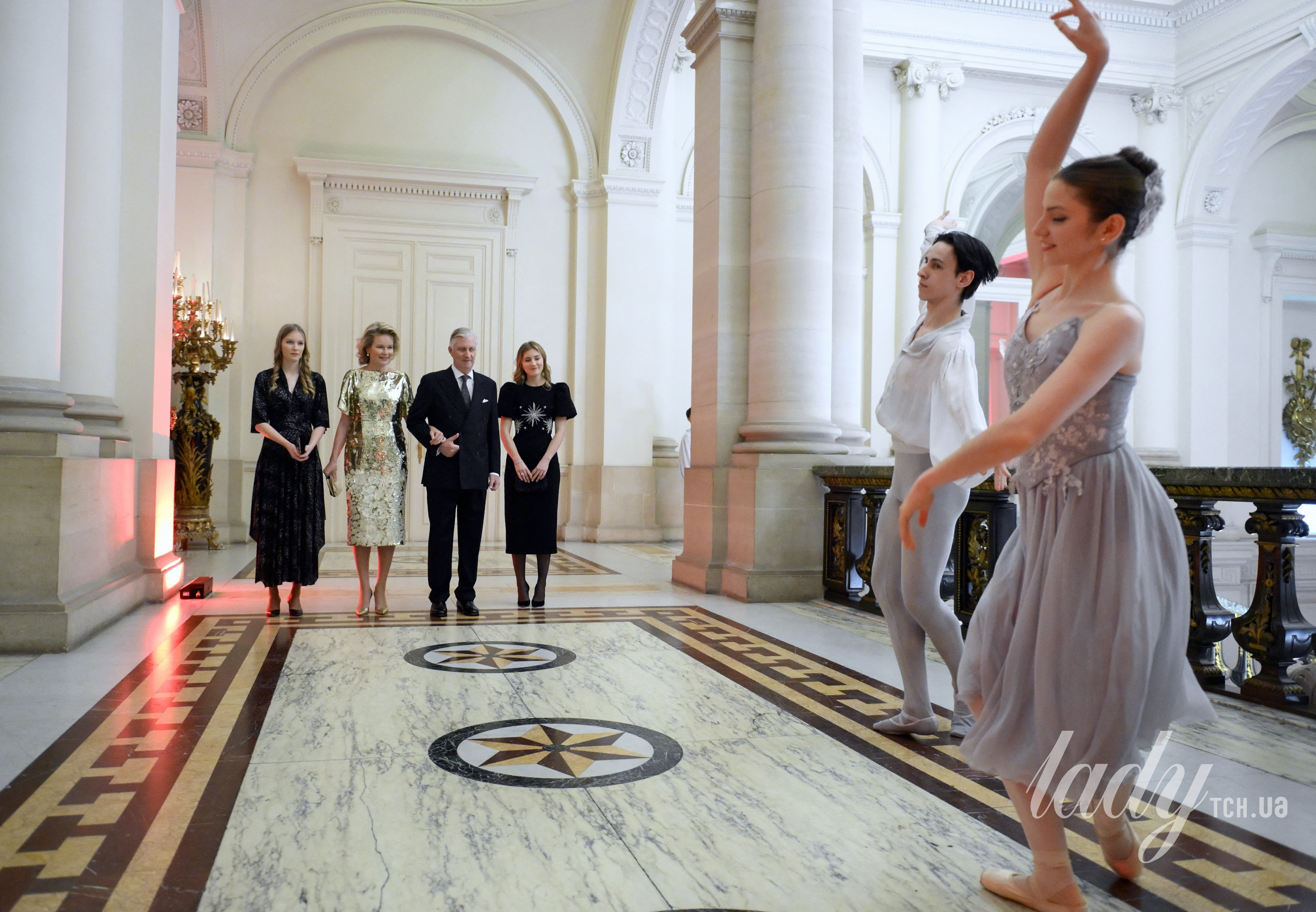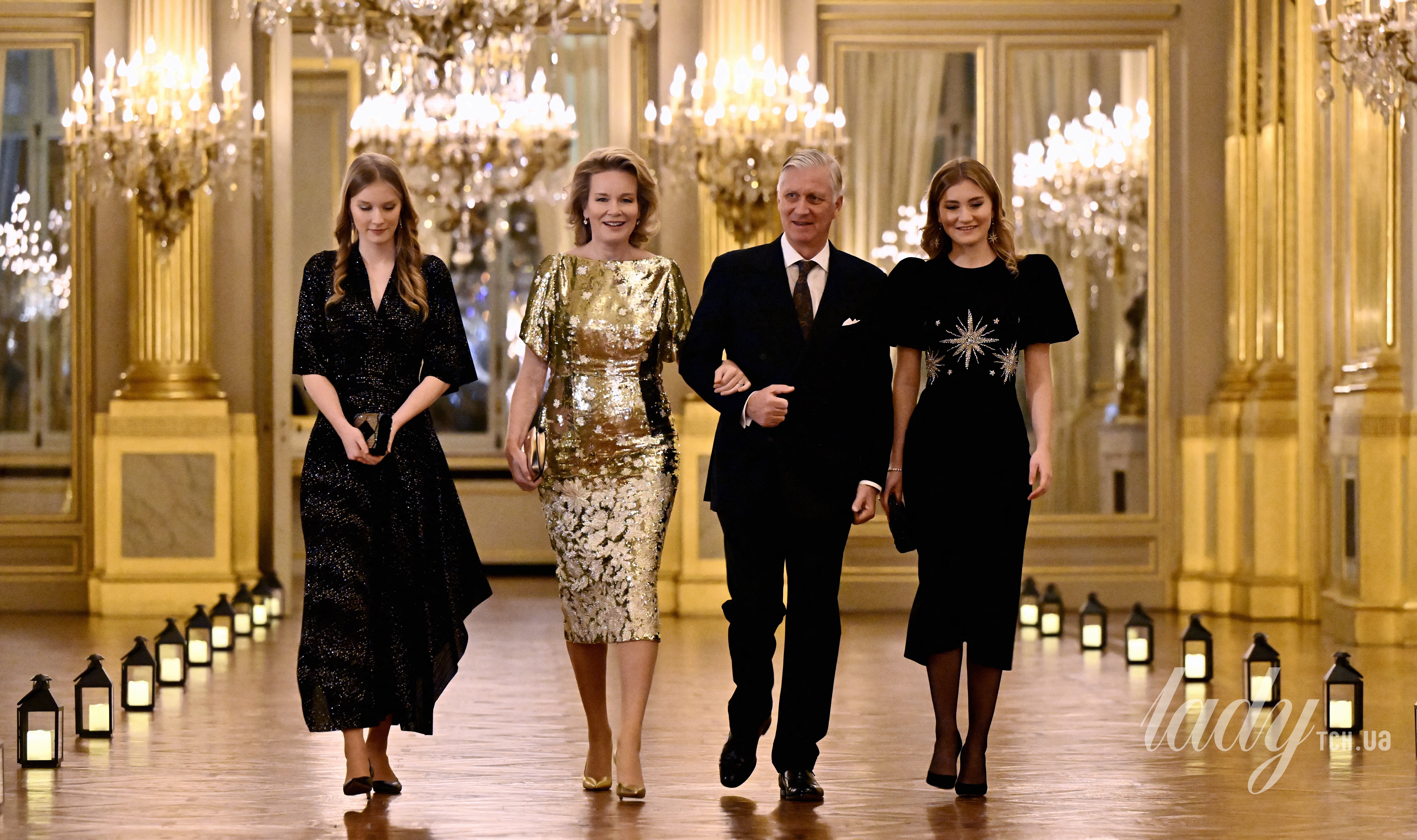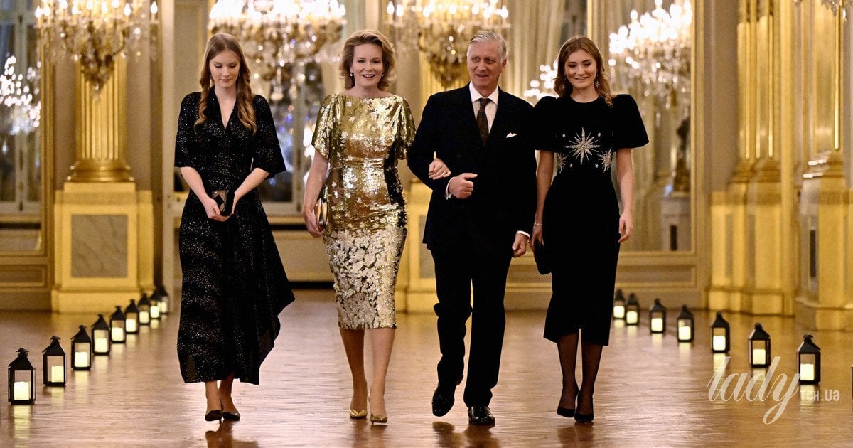 Принцеса Елеонора була одягнена в красиву блискучу сукню і тримала в руках клатч, а взула туфлі-човники на підборах. Королева Матильда теж мала чудовий вигляд в золотій сукні, розшитій паєтками і з аплікацією на спідниці, туфлях-човниках до тону і з клатчем в руках. Вона зробила своє фірмове укладання і одягла сережки з діамантами. А глава сімейства — король Філіп — мав елегантний вигляд у чорному класичному костюмі, білій сорочці та з краваткою.
