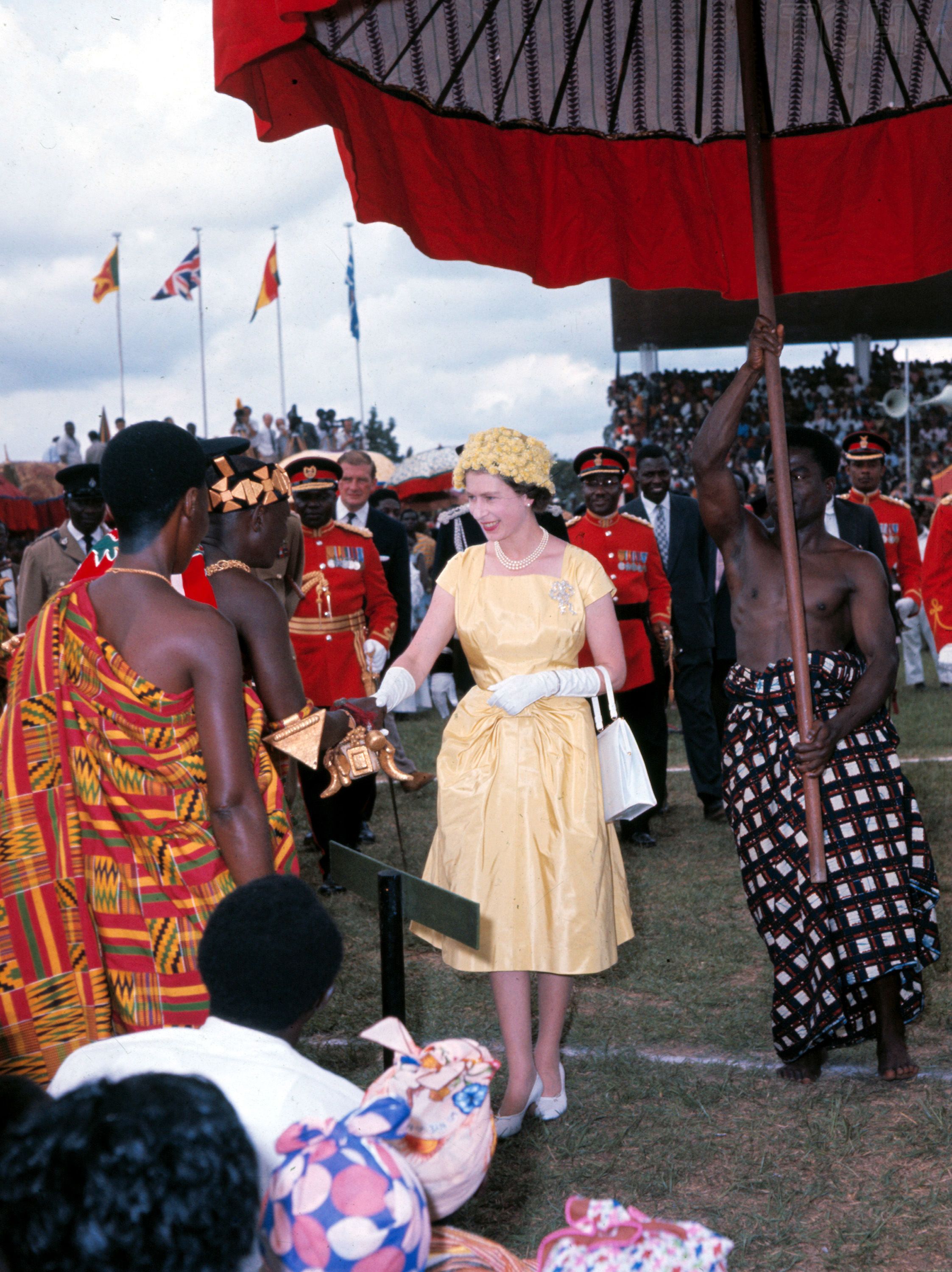 Монархиня правила довгі 70 років і завжди обирала яскраве вбрання для своєї появи на публіку.