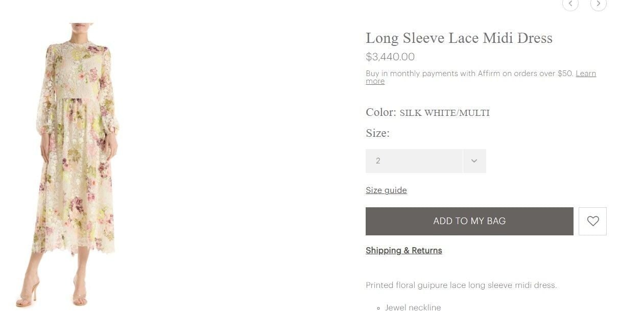 Вартість такого вбрання не маленька і становить 3 440 доларів.