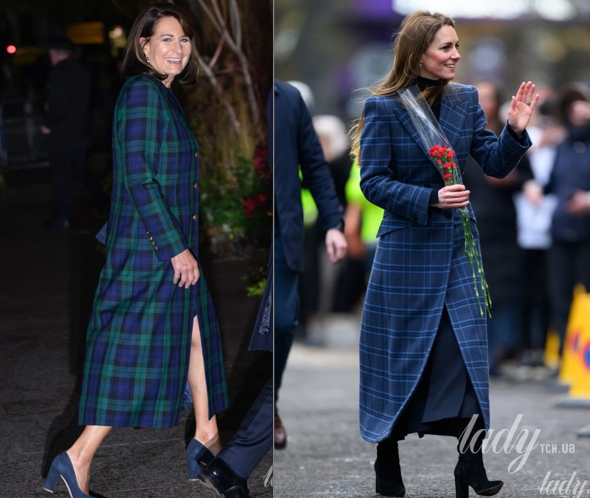 70-річна Керол Міддлтон у такому відвідувала різдвяний концерт, організований її дочкою Кетрін у грудні 2025 року. Тоді жінка обрала синьо-зелене картате пальто від бренду The House of Bruar, взула сині туфлі на широкому підборі і доповнила образ прикрасами від Van Cleef & Arpels та мініатюрним синім клатчем.
