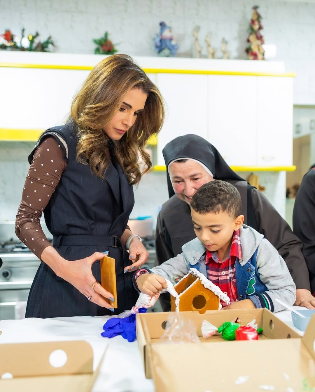 Під час заходу Ранія спостерігала за тим, як діти створювали ялинкові прикраси та спілкувалась з ними та черницями біля ялинки, поки Санта-Клаус роздавав дітям подарунки.