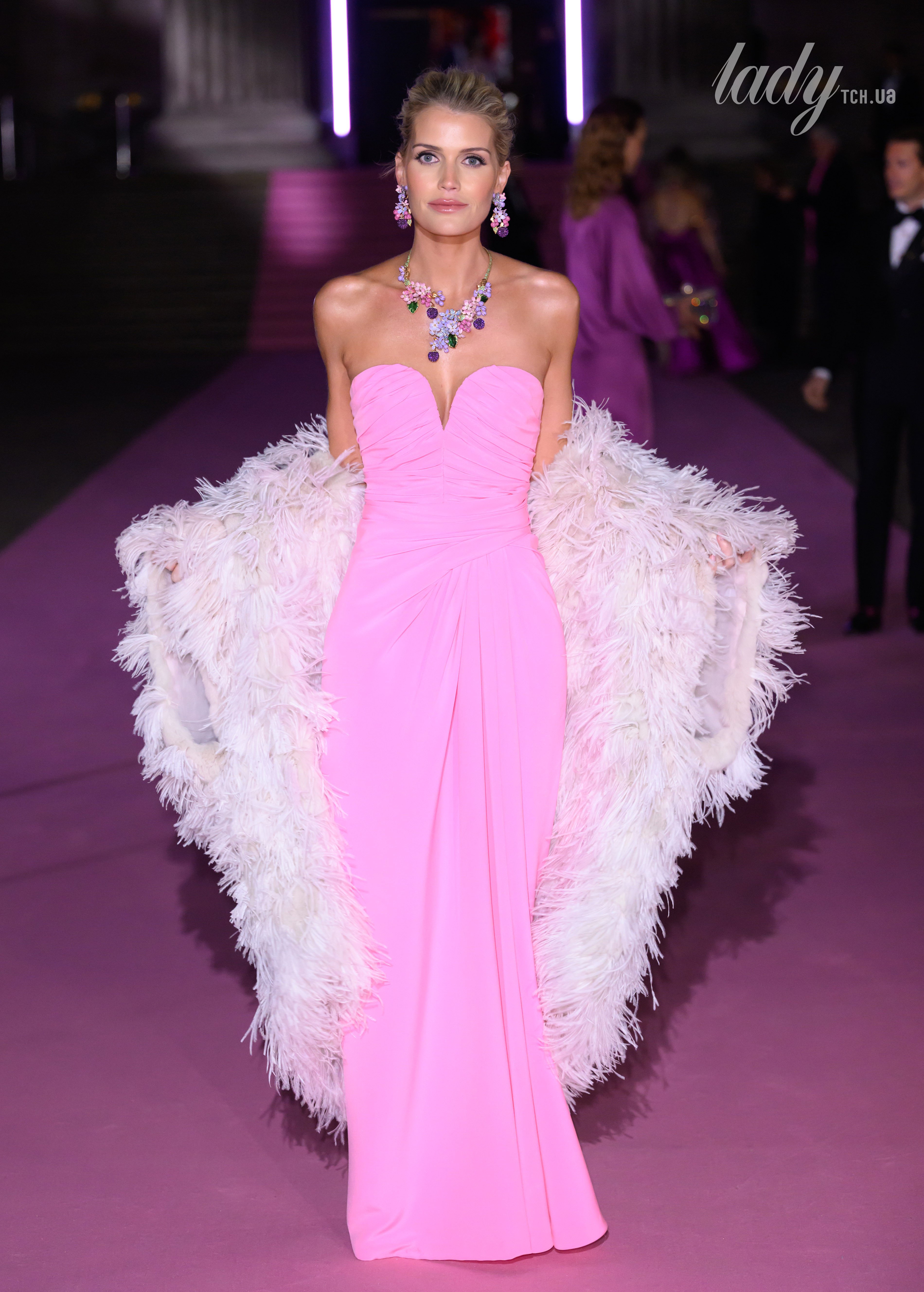 На тусовці з’явилися і племінниці принцеси Діани. Леді Амелія та леді Еліза Спенсери одяглися в цікаве вбрання. Амелія була в асиметричній яскраво-рожевій сукні з візерунком у вигляді червоних троянд з одним рукавом-ліхтариком та ефектним рожевим бантом на талії. Вона доповнила образ кольє з діамантами та рубінами і відповідними сережками-краплинами та рожевим браслетом-манжетою, а в руках тримала білий крокодилячий клатч. Дівчина зробила вечірню зачіску та гарний макіяж.