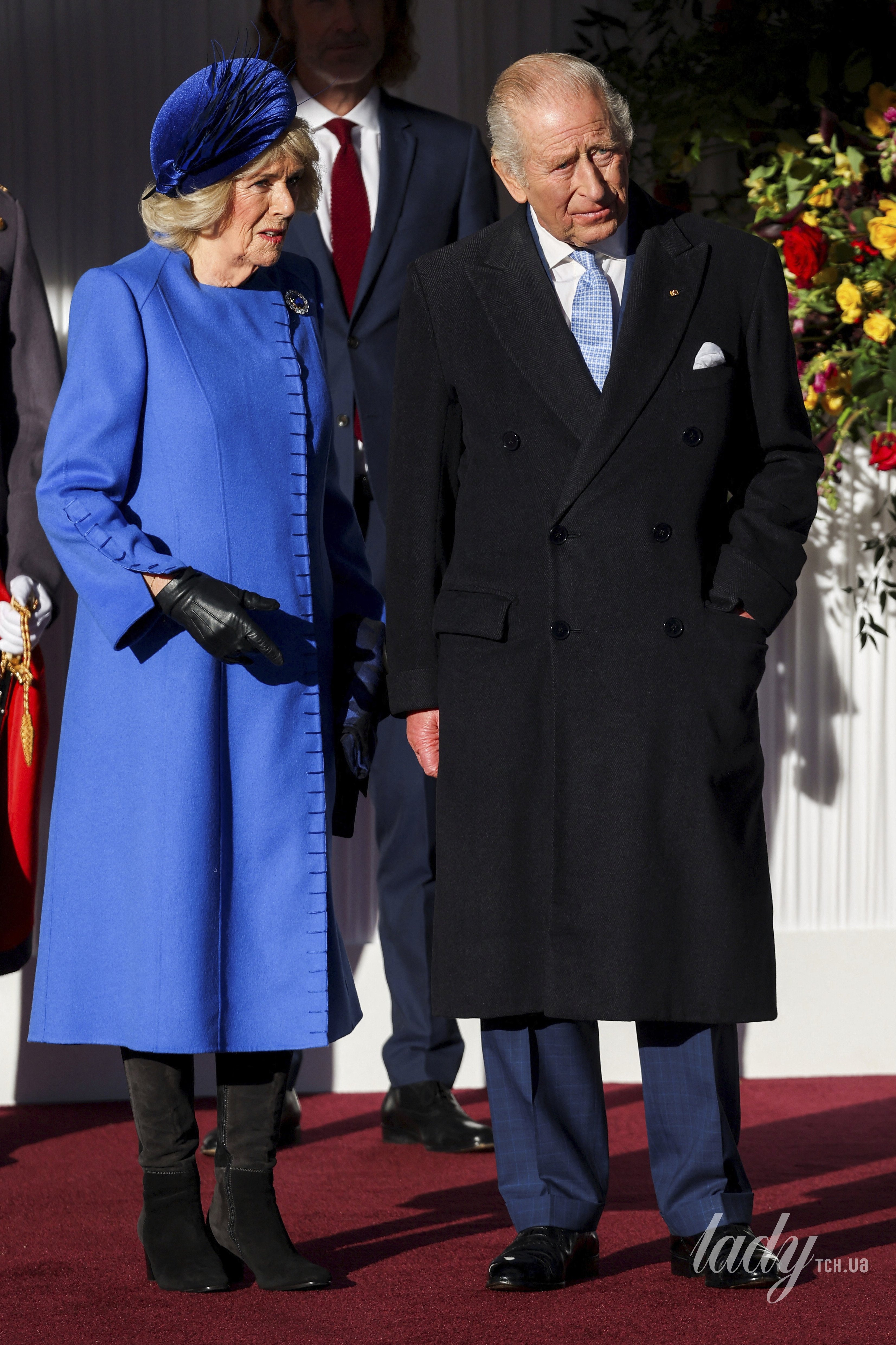 Одягла капелюшок з пір’ям та брошку-реліквію: королева Камілла на зустрічі з президентом та першою леді Німеччини