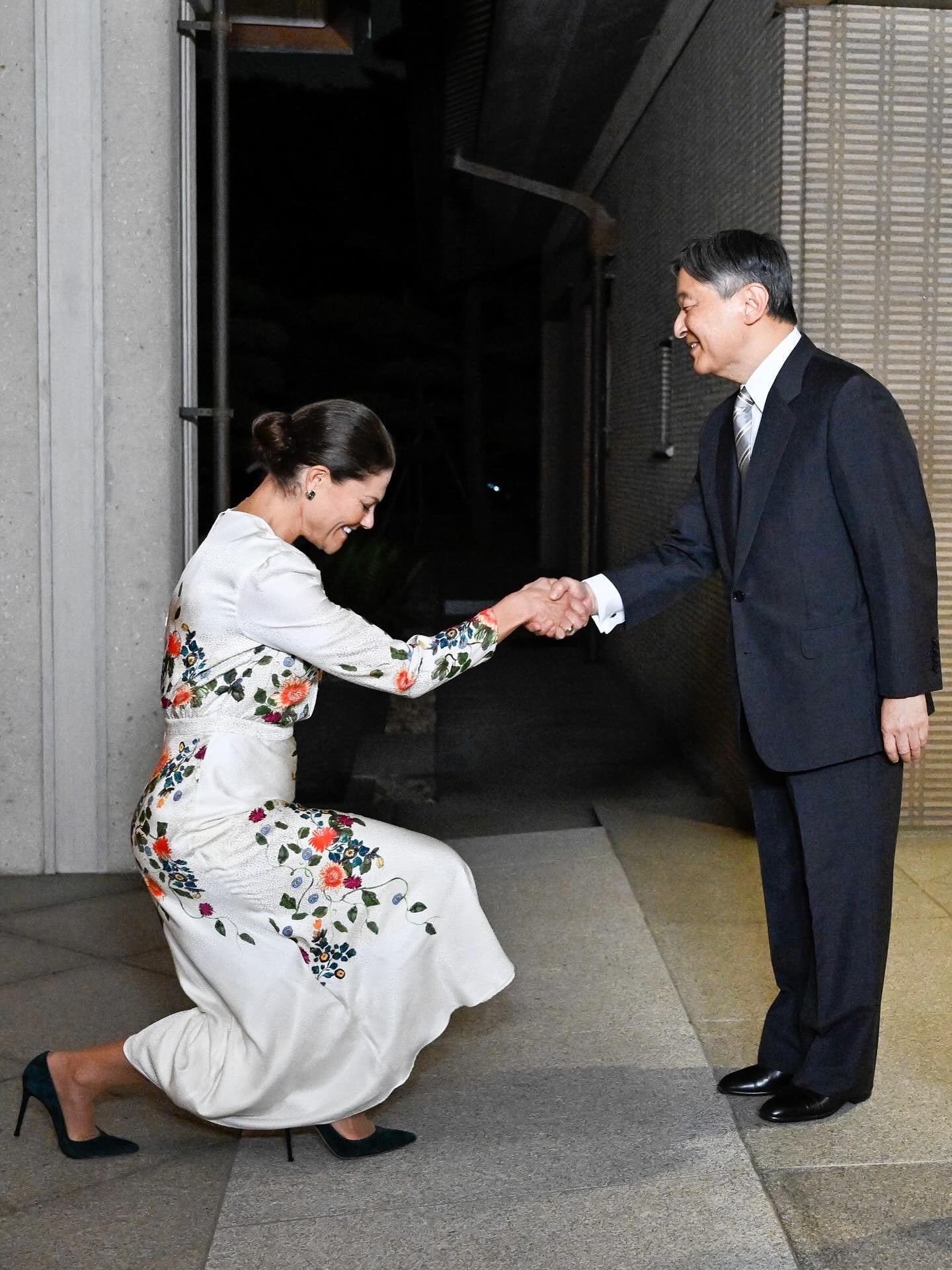 Під час зустрічі з імператором та імператрицею Японії — Нарухіто та Масако, які влаштували у Токіо вечерю для спадкової принцеси та принца Даніеля, майбутня королева продемонструвала глибокий та гарний реверанс. Ми не часто бачимо Вікторію у виконанні реверансу, а цими знімками шведський королівський палац поділився у своєму Instagram.