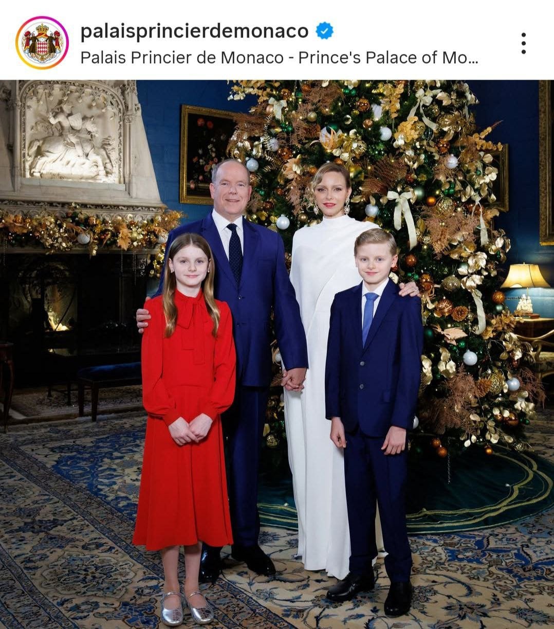 «Їх Найсвітліші Високості князь Альберт II і княгиня Шарлін у супроводі своїх дітей, спадкового принца Жака та принцеси Габріелли, передають найтепліші побажання щасливого та квітучого нового року», — йдеться під знімком авторства Мікаель Алезі.