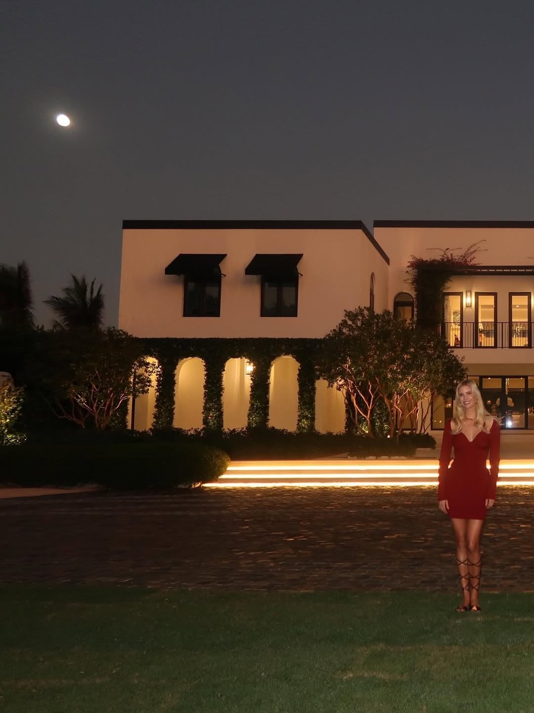 Іванка постала у короткій сукні гранатового відтінку з довгими рукавами, тонкими бретельками і V-подібним декольте. Вбрання вона доповнила сандалями-гладіаторами, золотими сережками-кільцями, зачіскою з локонами і вечірнім макіяжем.