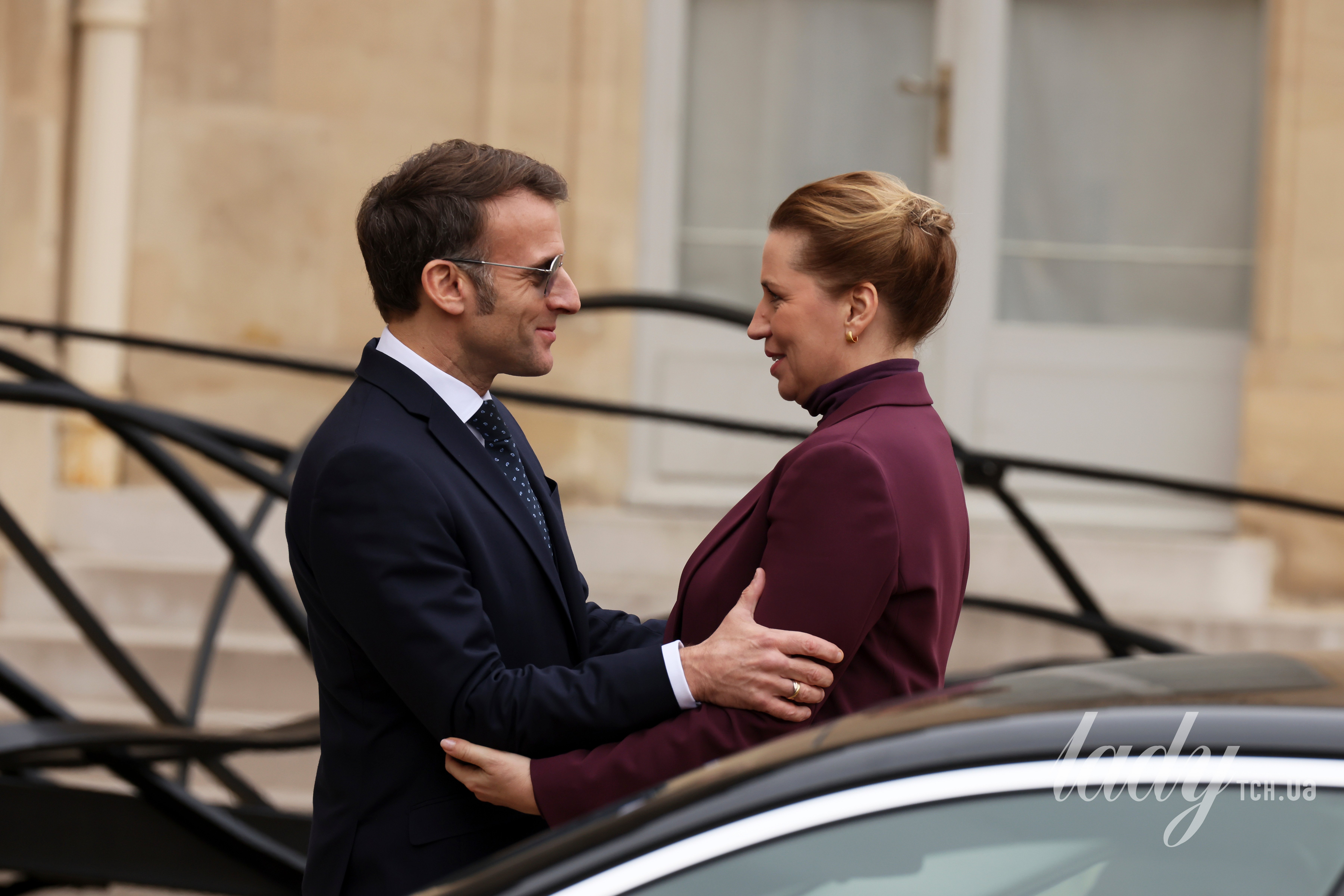 Прем'єр-міністерка Данії у жакеті кольору марсала зустрілася з Макроном
