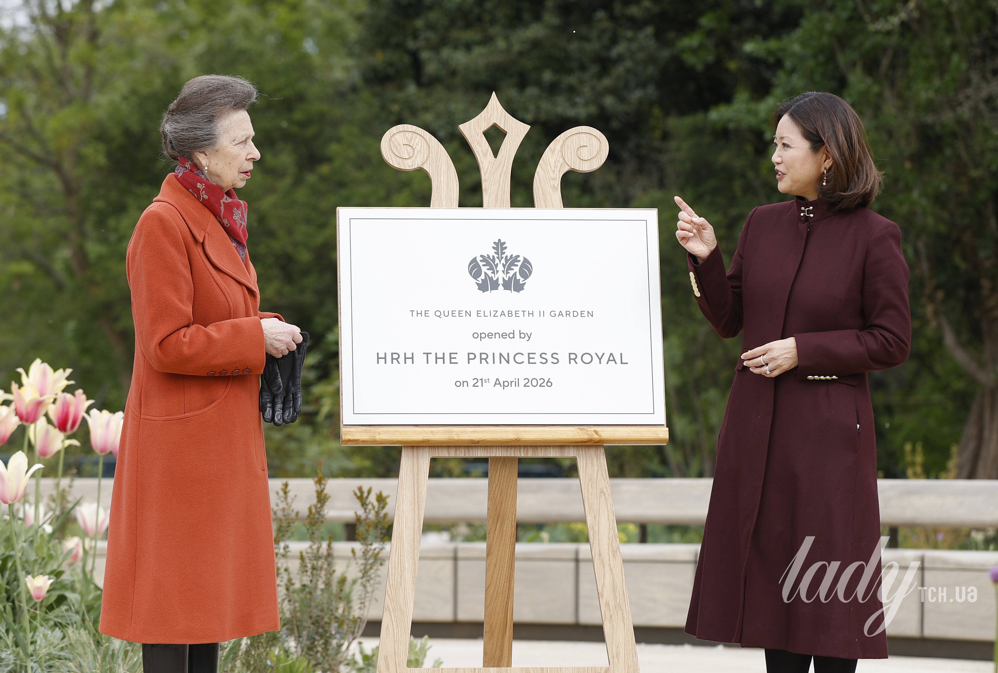 Принцеса Анна, наслідуючи королеву Єлизавету II, з'явилася на відкритті саду її імені у яскравому образі