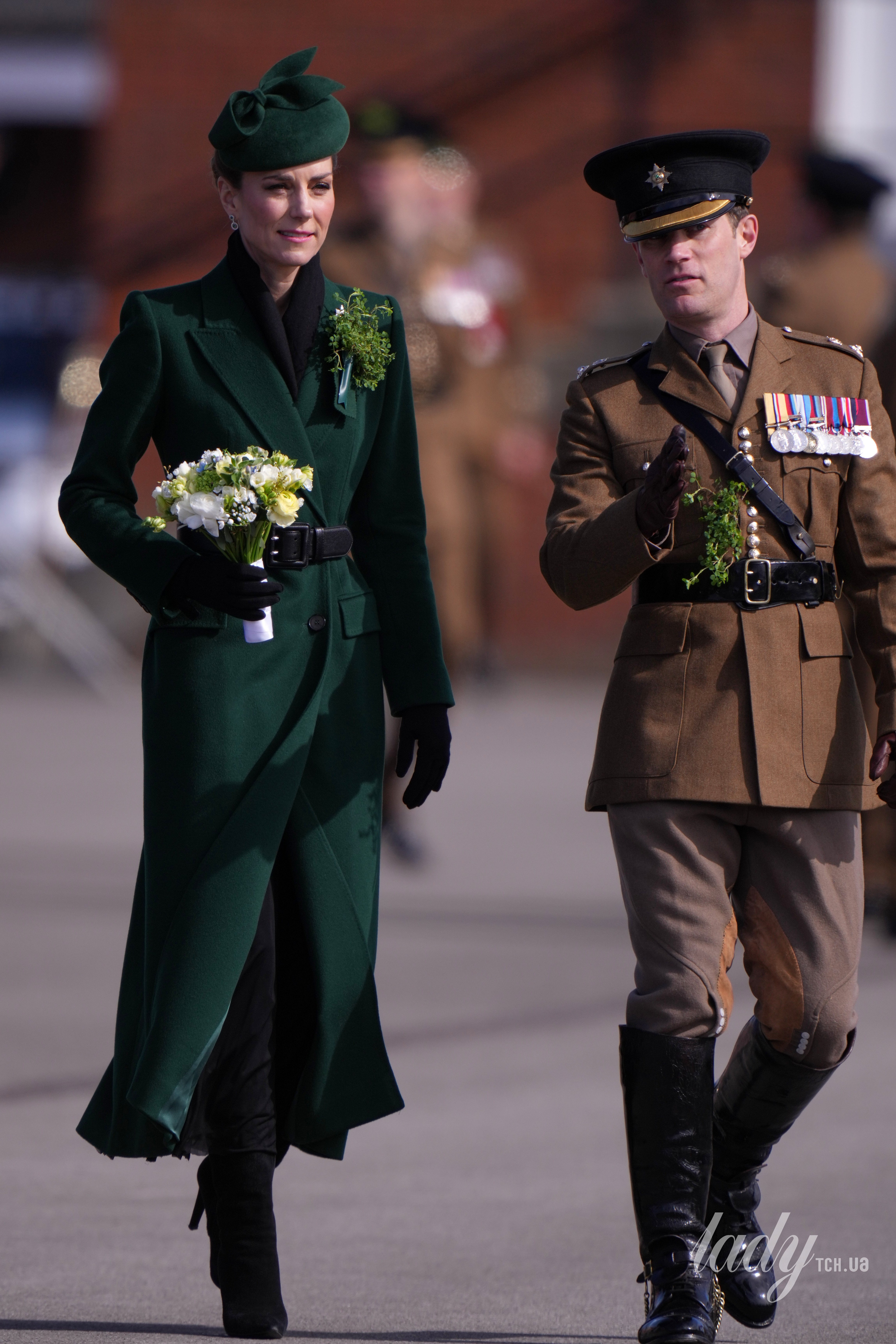 Принцеса Уельська як почесний полковник Ірландської гвардії з’явилася на параді на честь Дня Святого Патрика в казармах Монс 17 березня, і обрала для виходу ретельно підібраний образ.