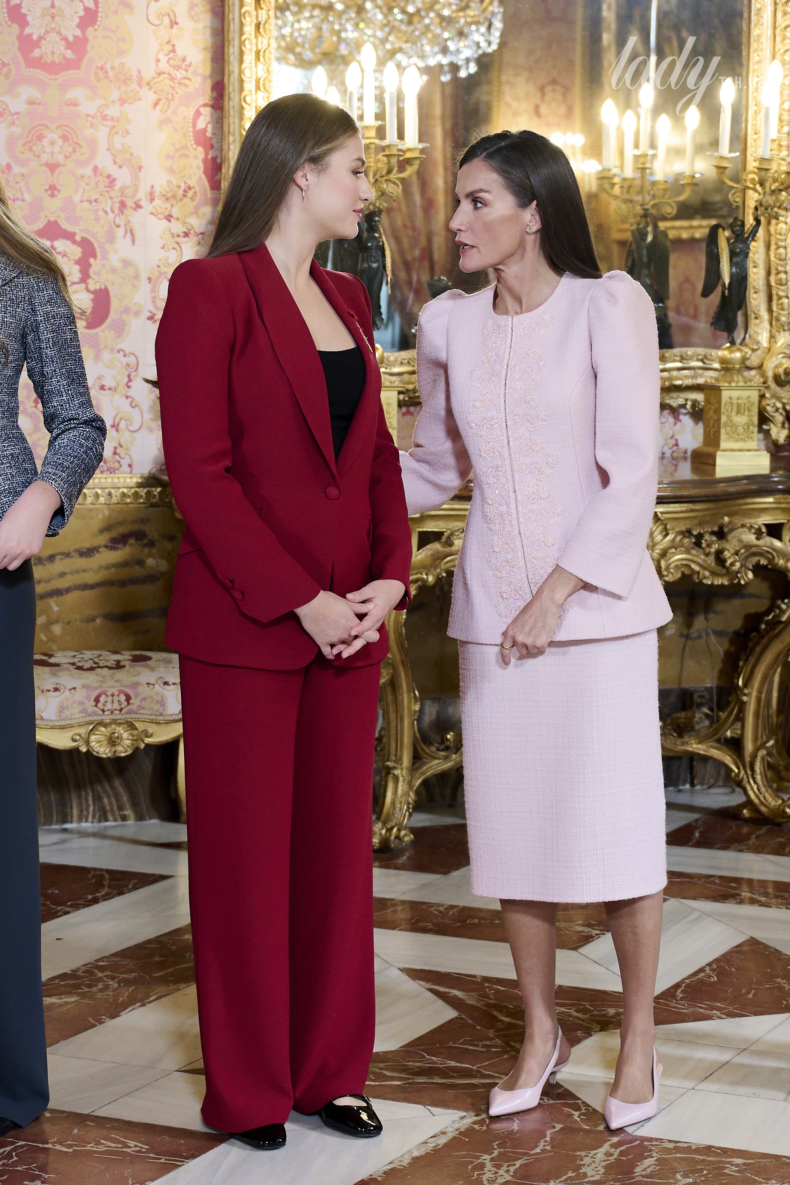 Фотографи заскочили милий момент, коли принцеса поклала долоню на спину своєї матері королеви Летиції, коли вони заходили до однієї із залів палацу, таким чином продемонструвавши жест підтримки. Цей жест, до речі, часто використовують принц і принцеса Уельські по відношенню одне до одного на публіці, він також говорить про те, що вони як пара завжди підтримують одне одного, де б не перебували.