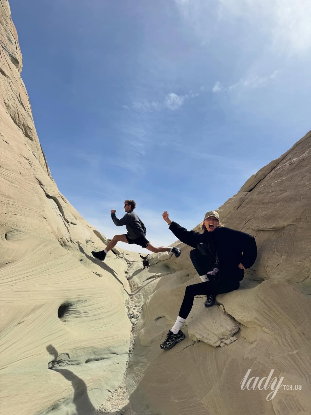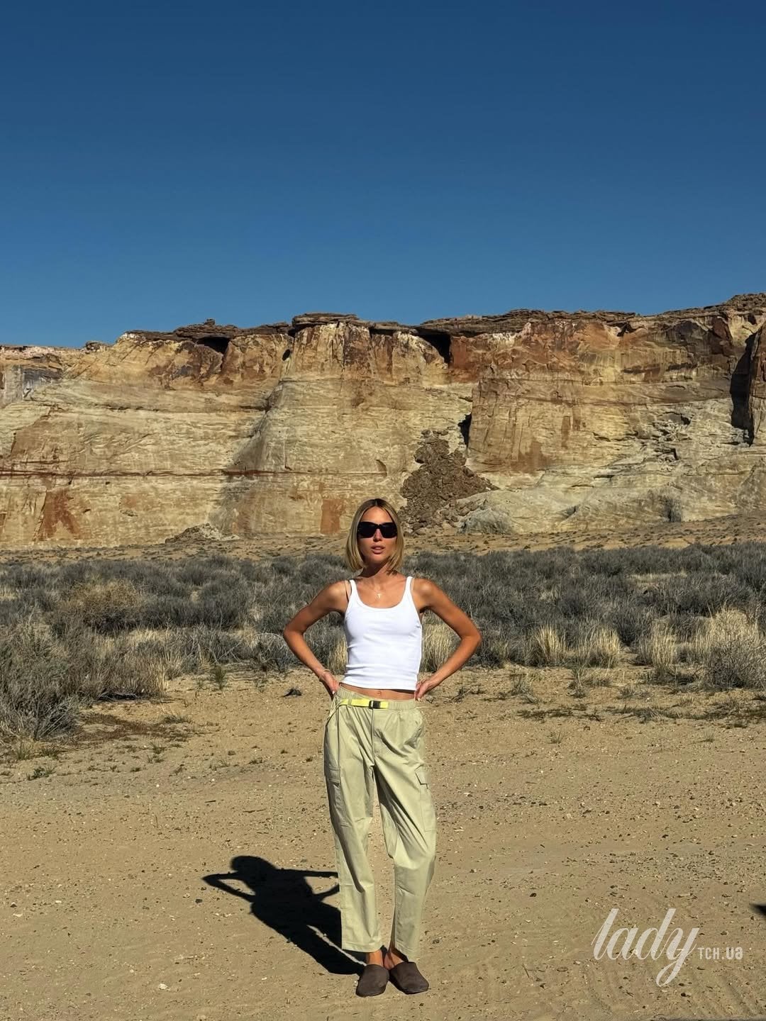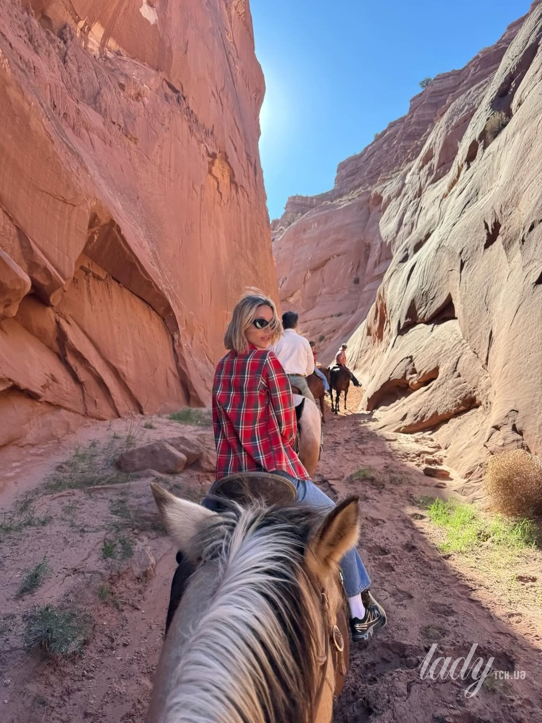 Королівська особа була одягнена в білий топ, штани-карго та зручне взуття для прогулянок у сонячний день, досліджуючи скелястий ландшафт. Також вона продемонструвала лук у червоній фланелевій сорочці та джинсах і з сонцезахисними окулярами, катаючись верхи на коні.