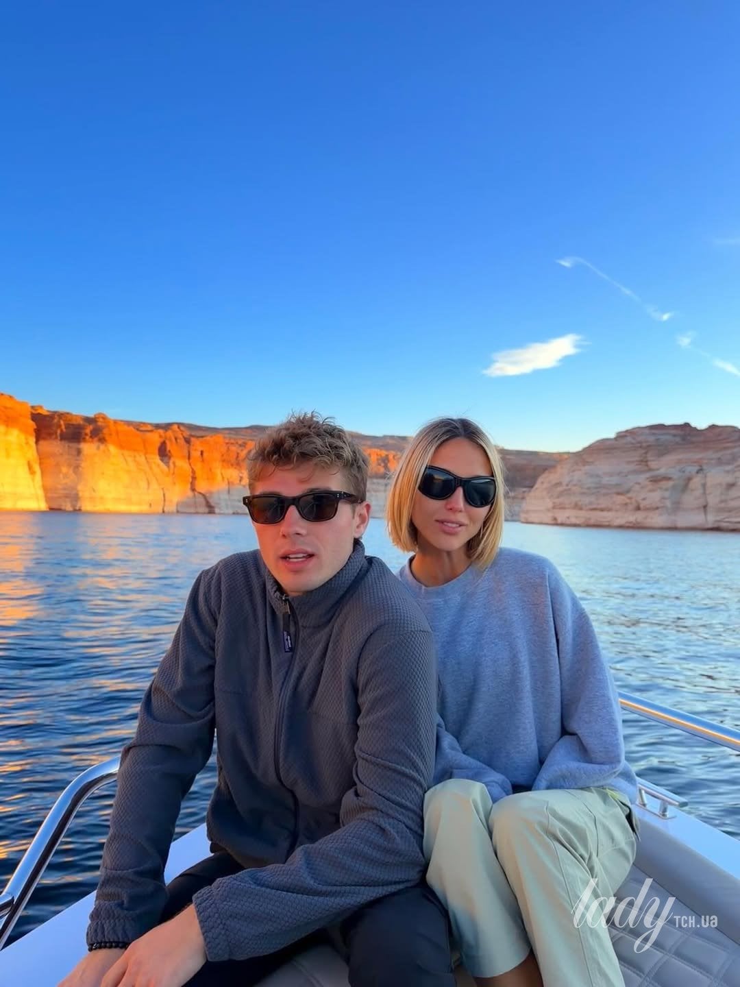 На ще одному фото дівчина була заскочена в джемпері з круглим вирізом, який обрала для прогулянки човном річкою.