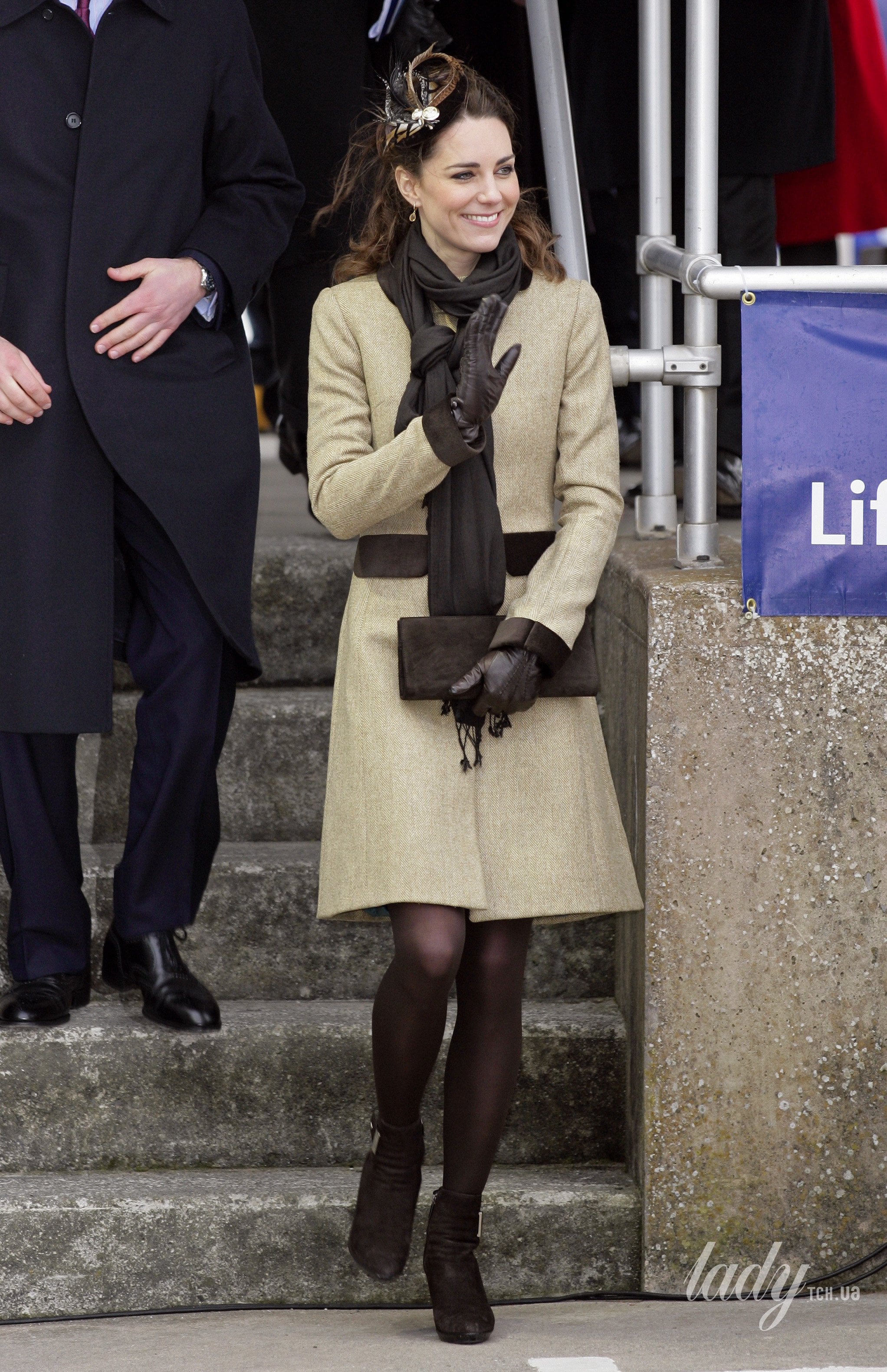 Однак було відчуття, що під час створення образу для дівчинки бренд надихнувся старим луком Кетрін, адже у схожому пальті вона з’явилася взимку 2011 року, коли ще була у статусі нареченої принца Вільяма.