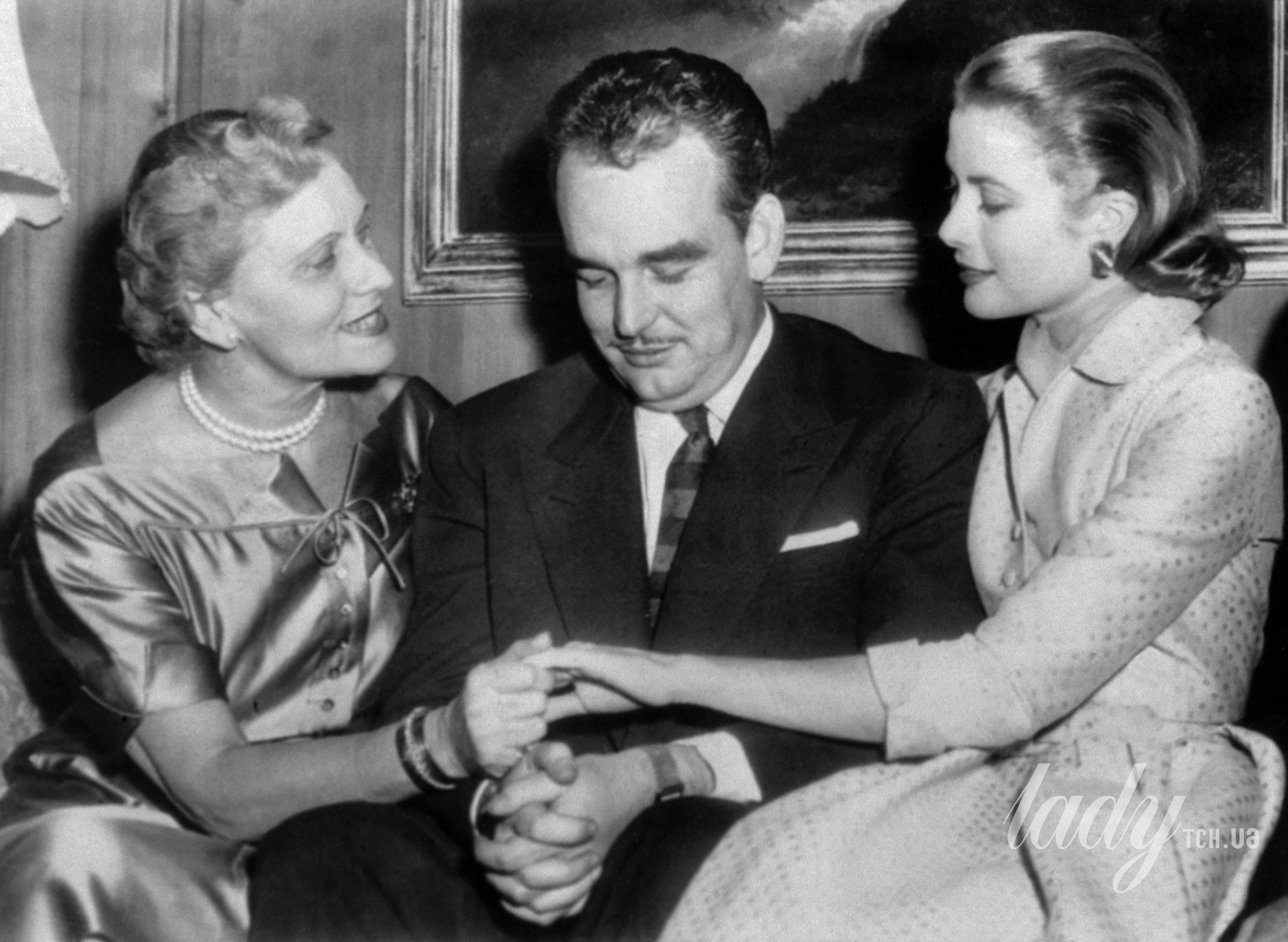 Мати Грейс Келлі і князь Реньє зі своєю майбутньою дружиною в день їхніх заручин / © Getty Images