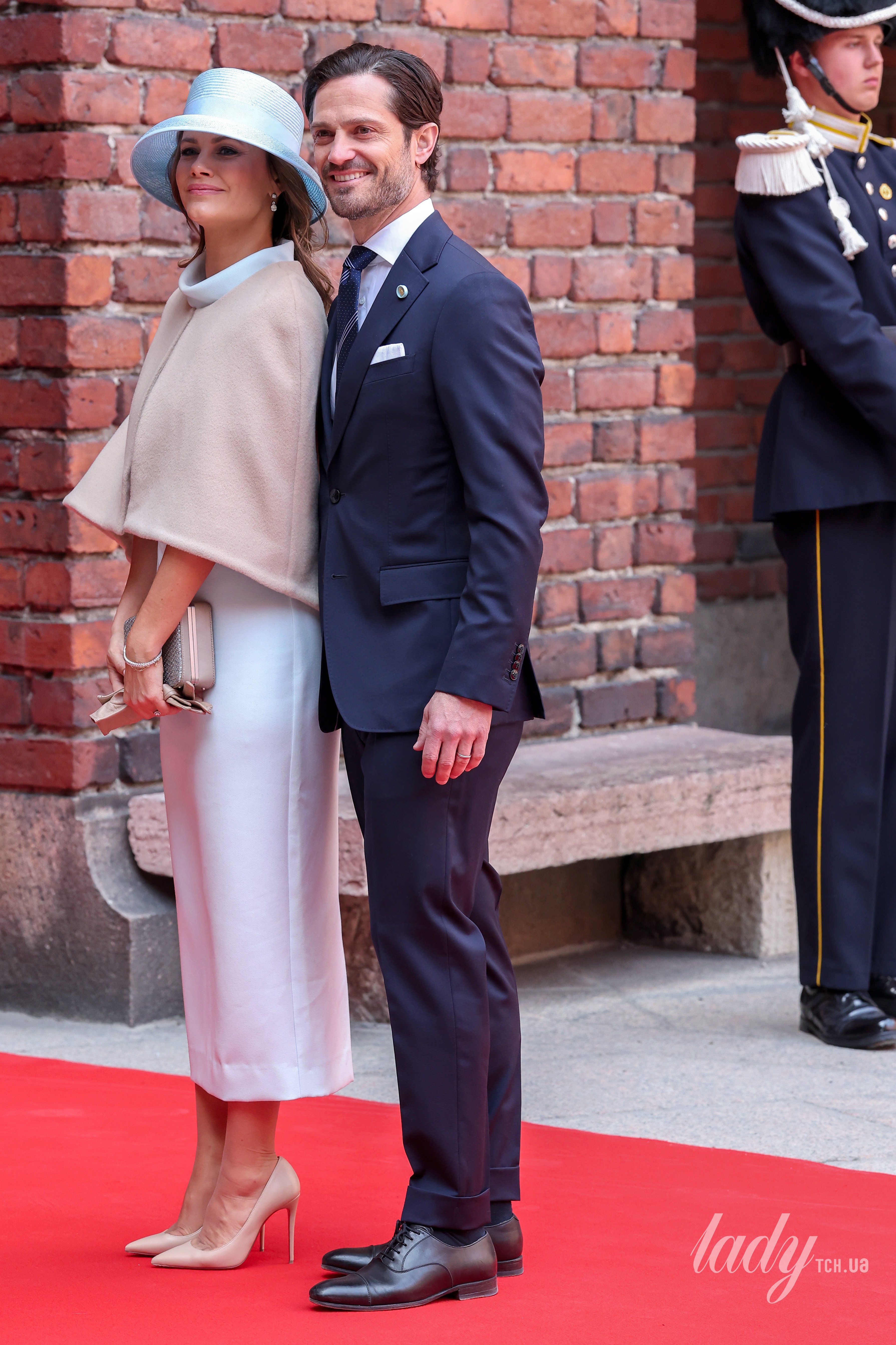 41-річна принцеса Софія з’явилася на святковому заході в елегантній небесно-блакитній сукні міді з крепу від Roland Mouret, нюдовій накидці з м’якої тканини, накинутій зверху, а також взула нюдові туфлі-човники на високій шпильці Christian Louboutin і в руках тримала невеликий клатч Susan Szatmary x Bolon Official. Родзинкою її образу став блакитний капелюх і діамантові сережки-висячки, гарний макіяж на обличчі та кілька браслетів на зап’ясті.