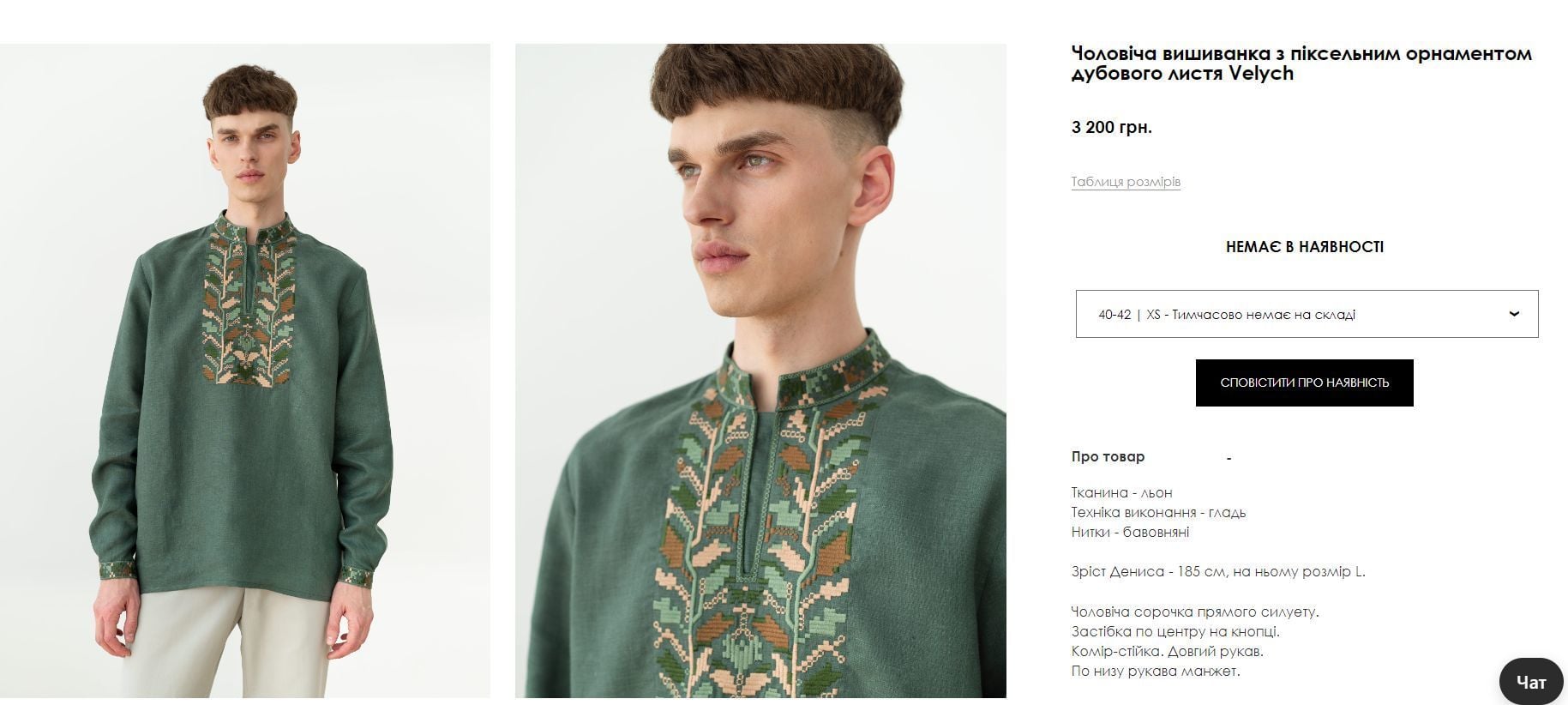 На сайті бренду саме цієї вишиванки, звичайно, у продажу вже немає. Хоча раніше була, а її вартість складала 3200 гривень.