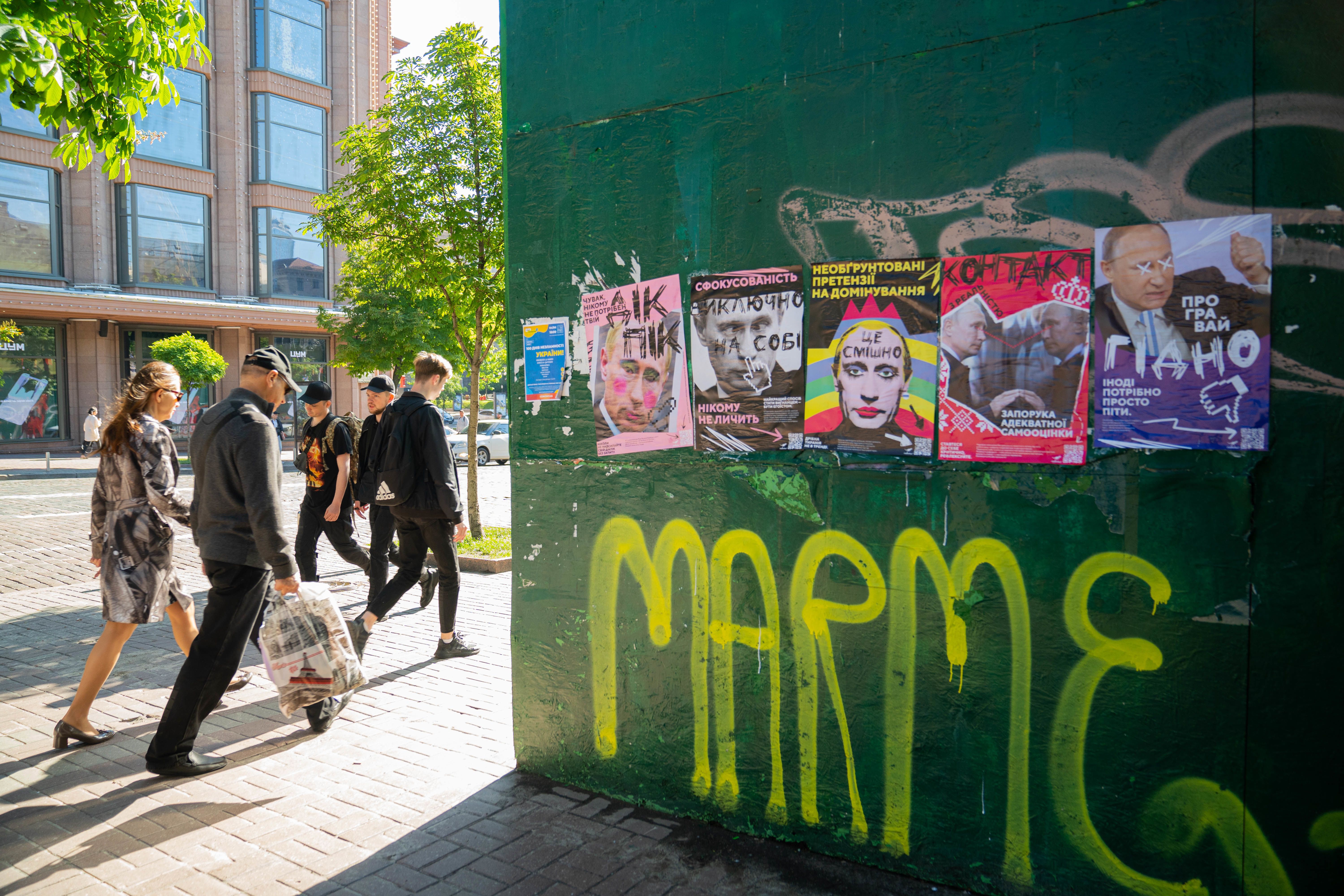 На вулицях столиці з'явились плакати, які висміюють Путіна.