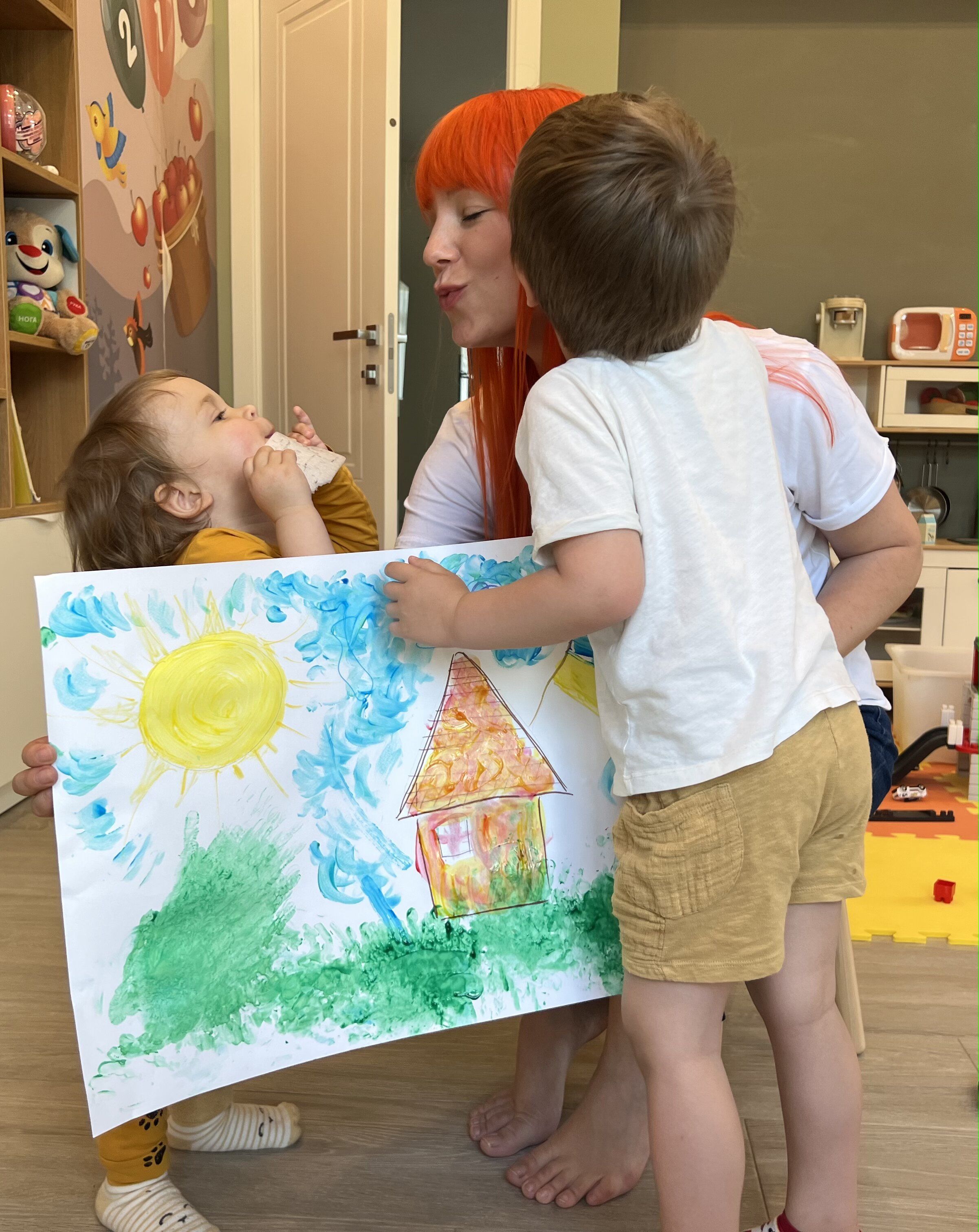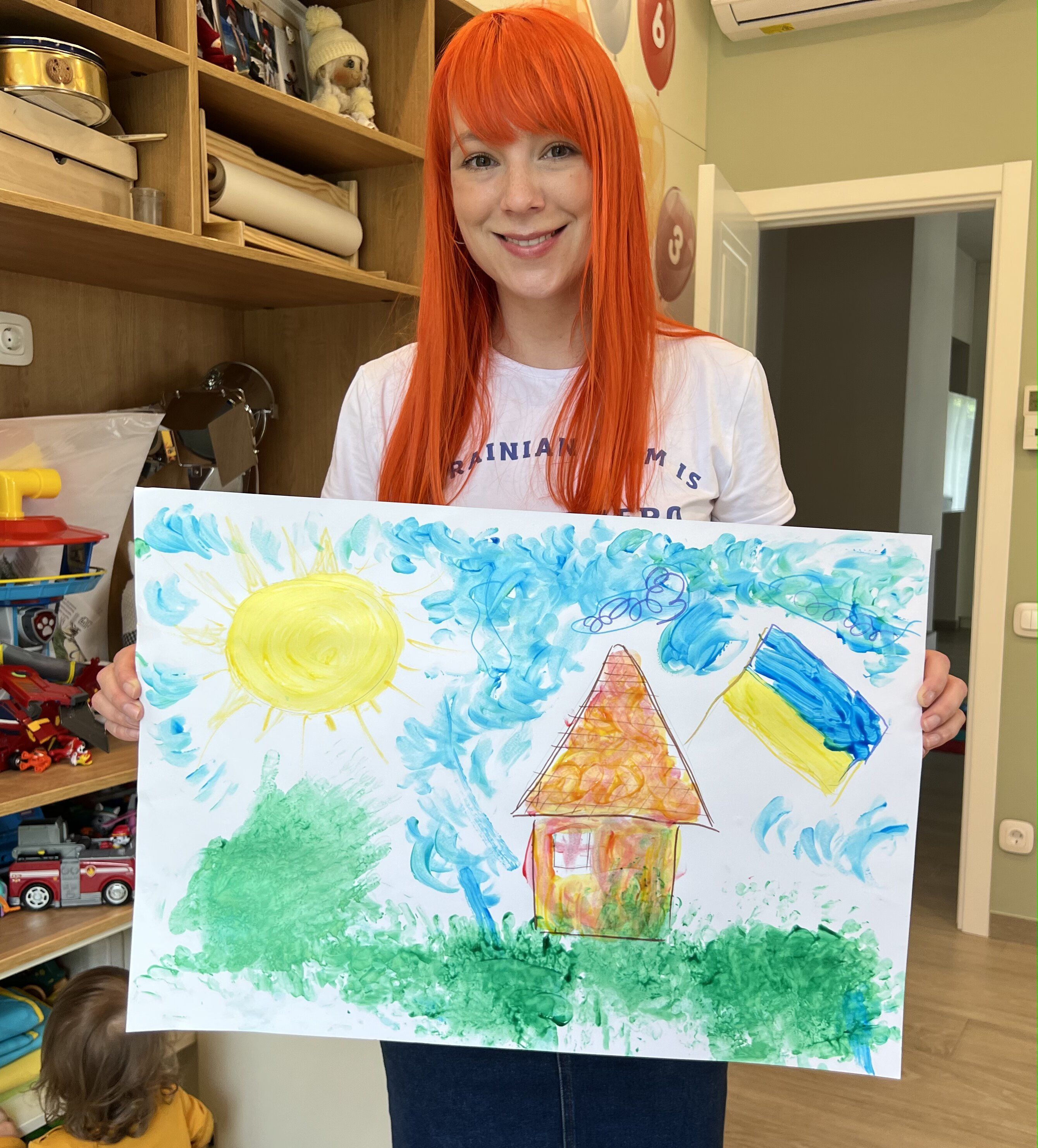 Повернувшись додому, Тарабарова з чоловіком допомогли своїм дітям створити малюнок в межах цього проєкту. На ньому діти зобразили омріяний сюжет мирної України – рідний дім з українським прапором на даху, яскравим сонцем та мирним небом.