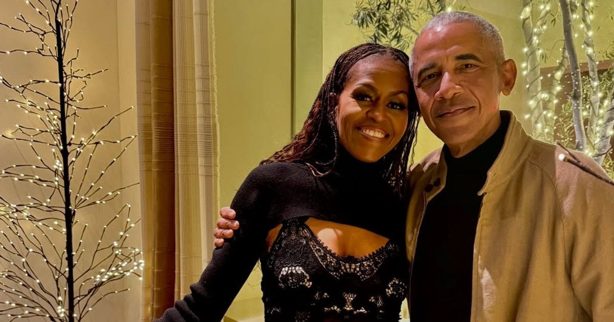 Такою ми її ще не бачили: Мішель Обама у мереживній сукні з пікантним декольте позувала в обіймах чоловіка
