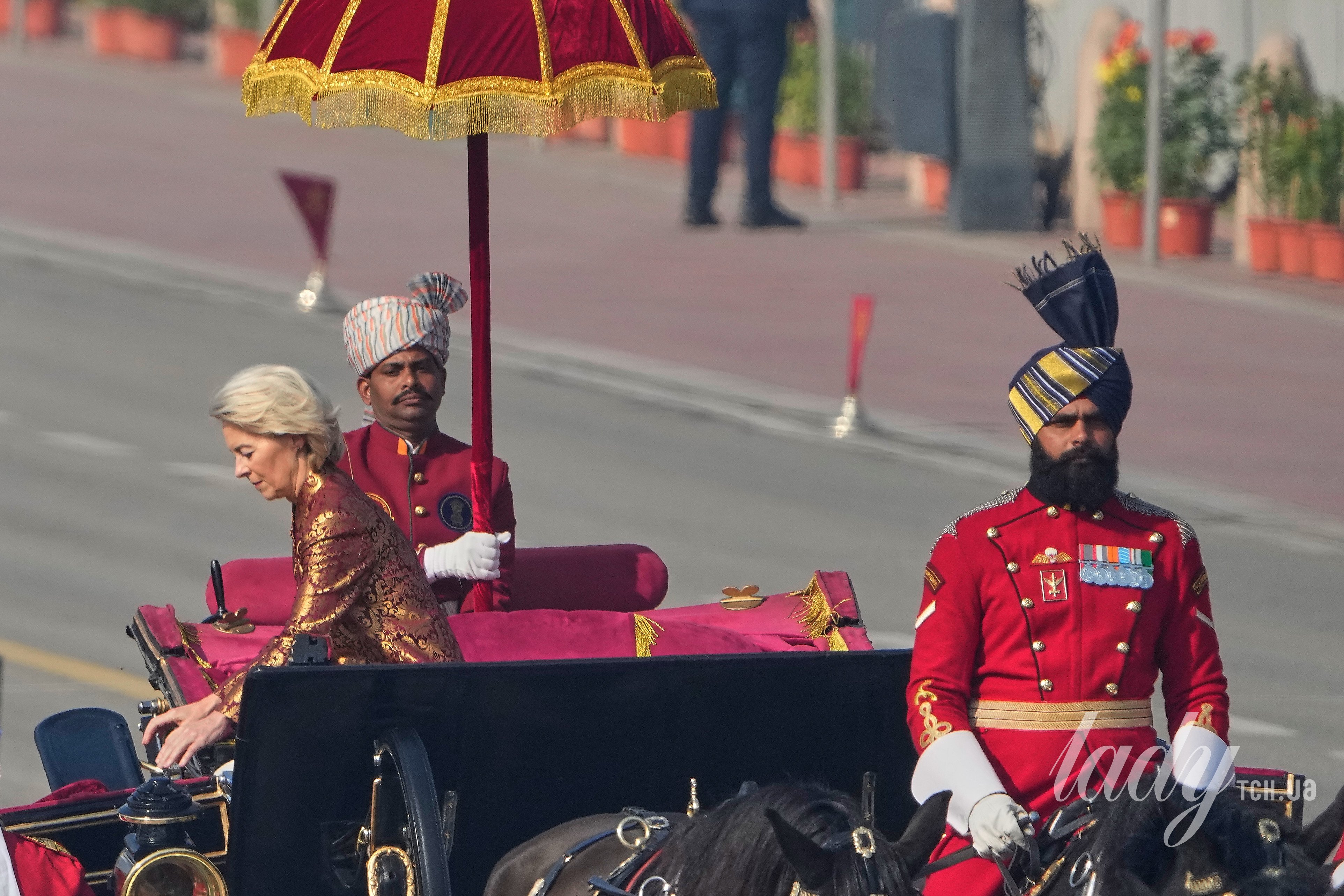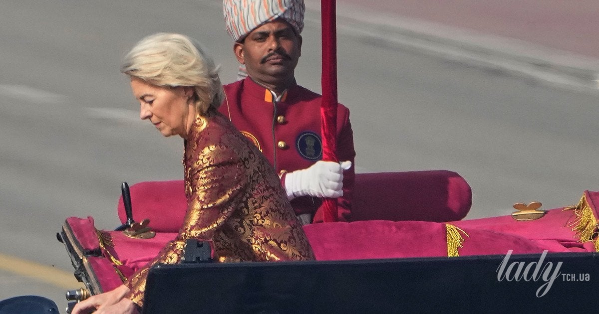 Президентка Європейської комісії Урсула фон дер Ляєн відвідала Парад до Дня Республіки в Нью-Делі. Фотографи зазнімкували, як вона вставала з карети.