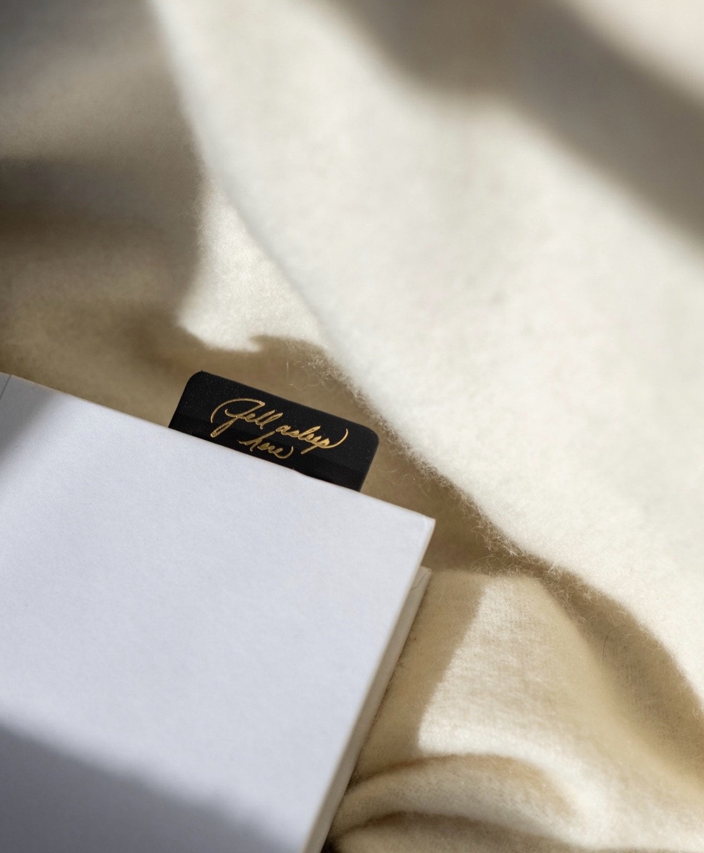 Закладка для книжок, прикрашена золотим тисненням зі словами «Заснула тут», виконаним фірмовим почерком Меган, виготовлена вручну з екологічно чистої шкіри рослинного дублення і коштує 18 доларів. Вона зроблена у Великій Британії, що є ненав’язливим нагадуванням про період життя герцога та герцогині Сассекських до того, як вони відмовилися від своїх королівських обов’язків 2020 року.