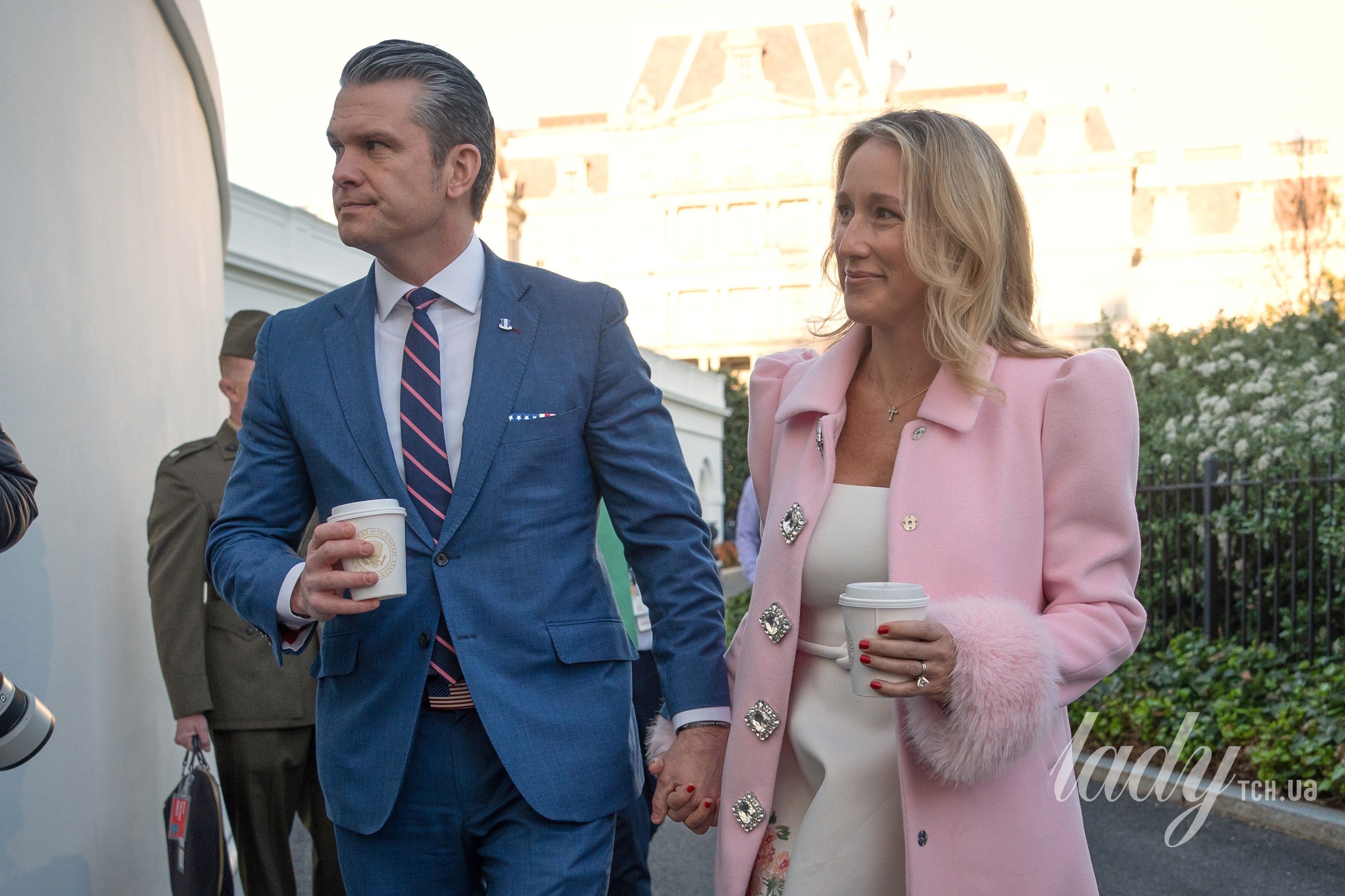 У білій сукні і рожевому пальті з хутряними манжетами: дружина міністра оборони США на заході