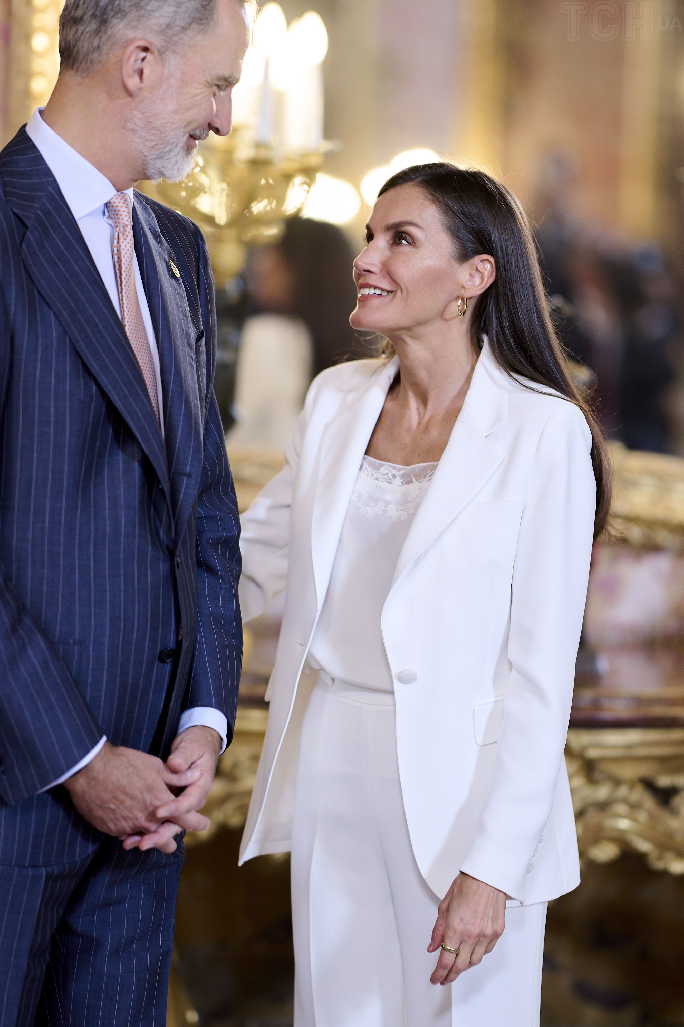 У білому костюмі та з красенем чоловіком-королем: королева Летиція на прийомі у палаці