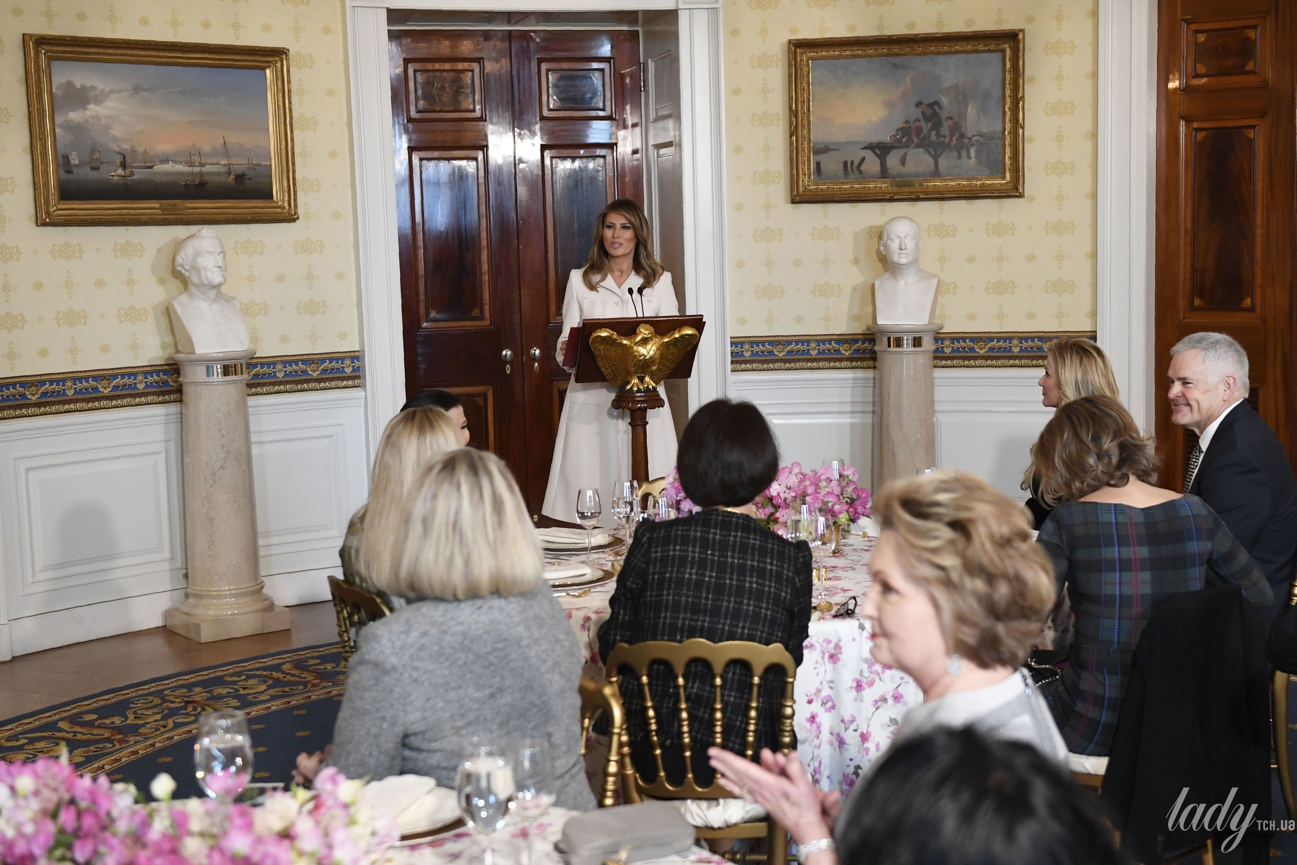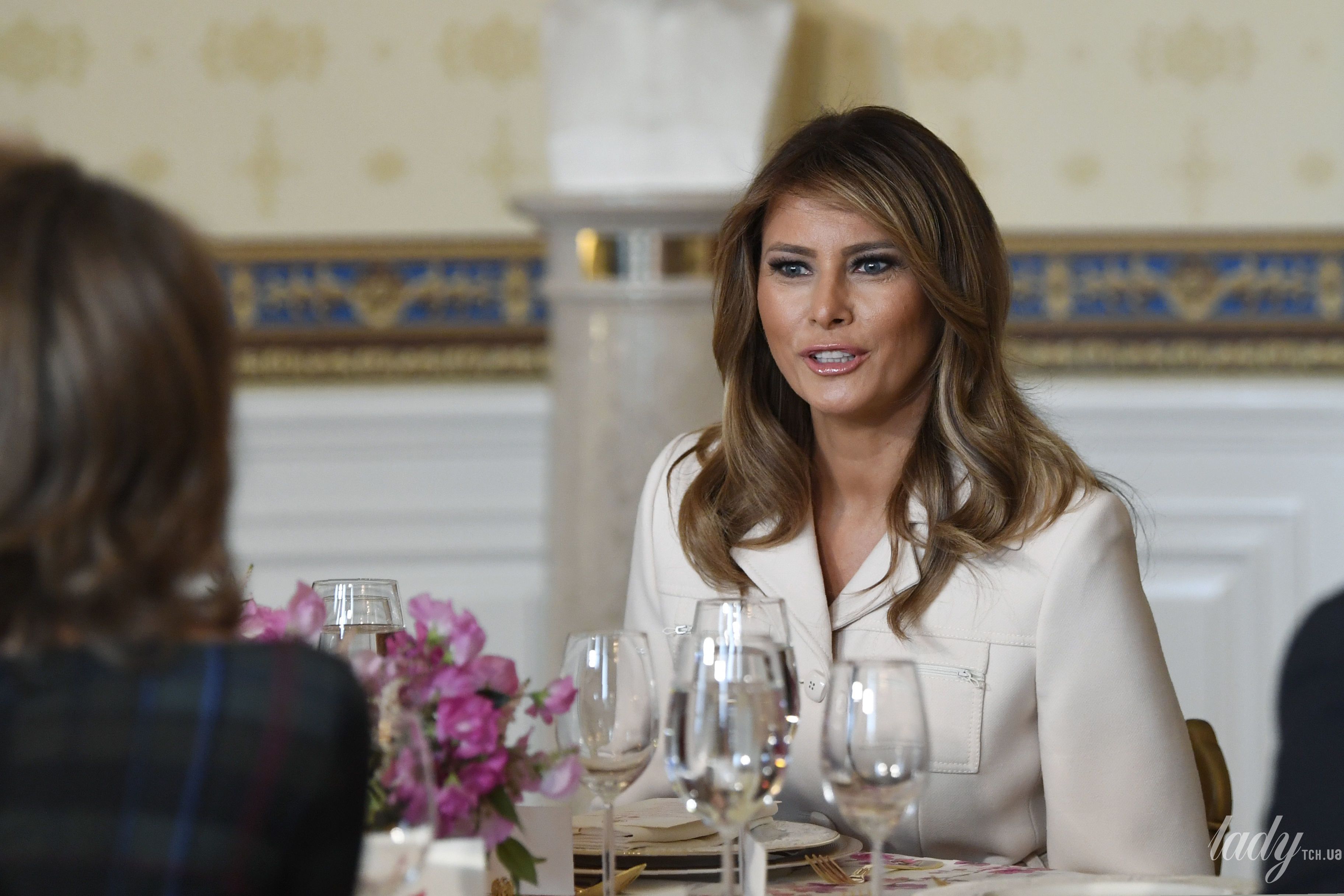 У білому пальті і з красивою укладкою: ефектний аутфіт Меланії Трамп на обіді з губернаторами