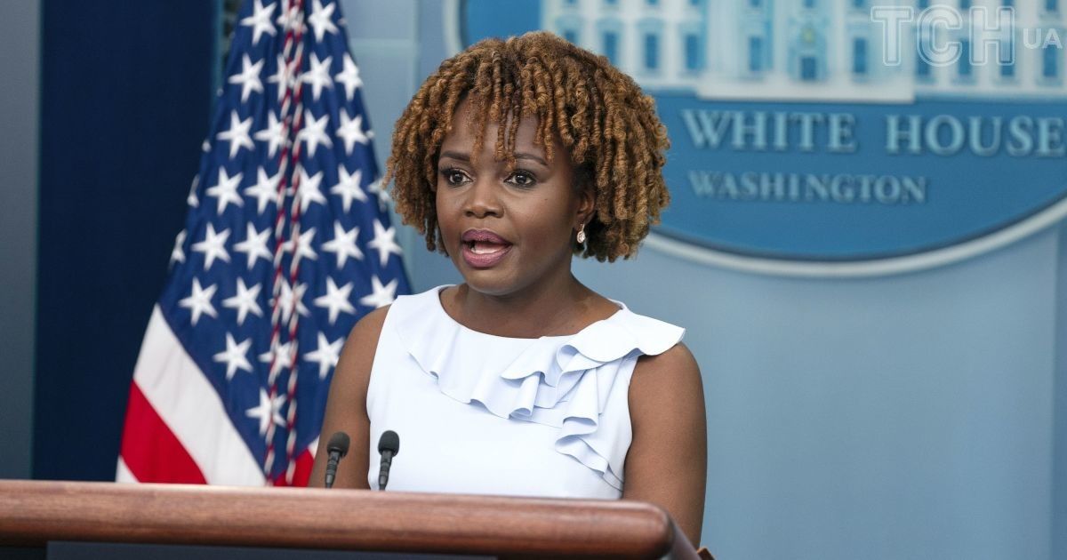 Прессекретарка Білого дому Карін Жан-П’єр продемонструвала на брифінгу новий ніжний аутфіт. Вона з'явилася перед журналістами у світло-блакитній прямій сукні без рукавів, виріз якої був прикрашений рюшами.