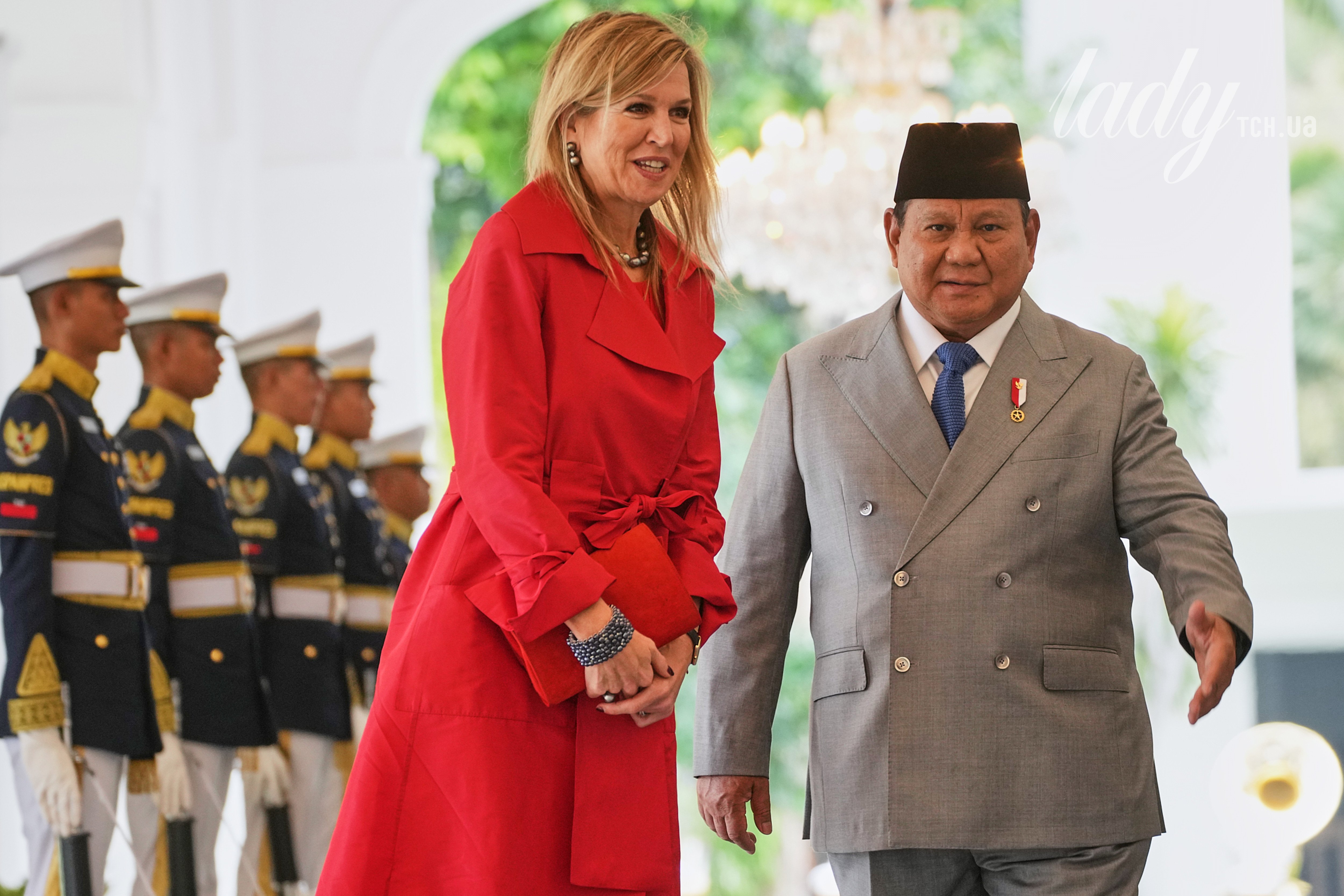 У червоному плащі і з кольє на шиї: ще один яскравий вихід королеви Максими з поїздки до Індонезії