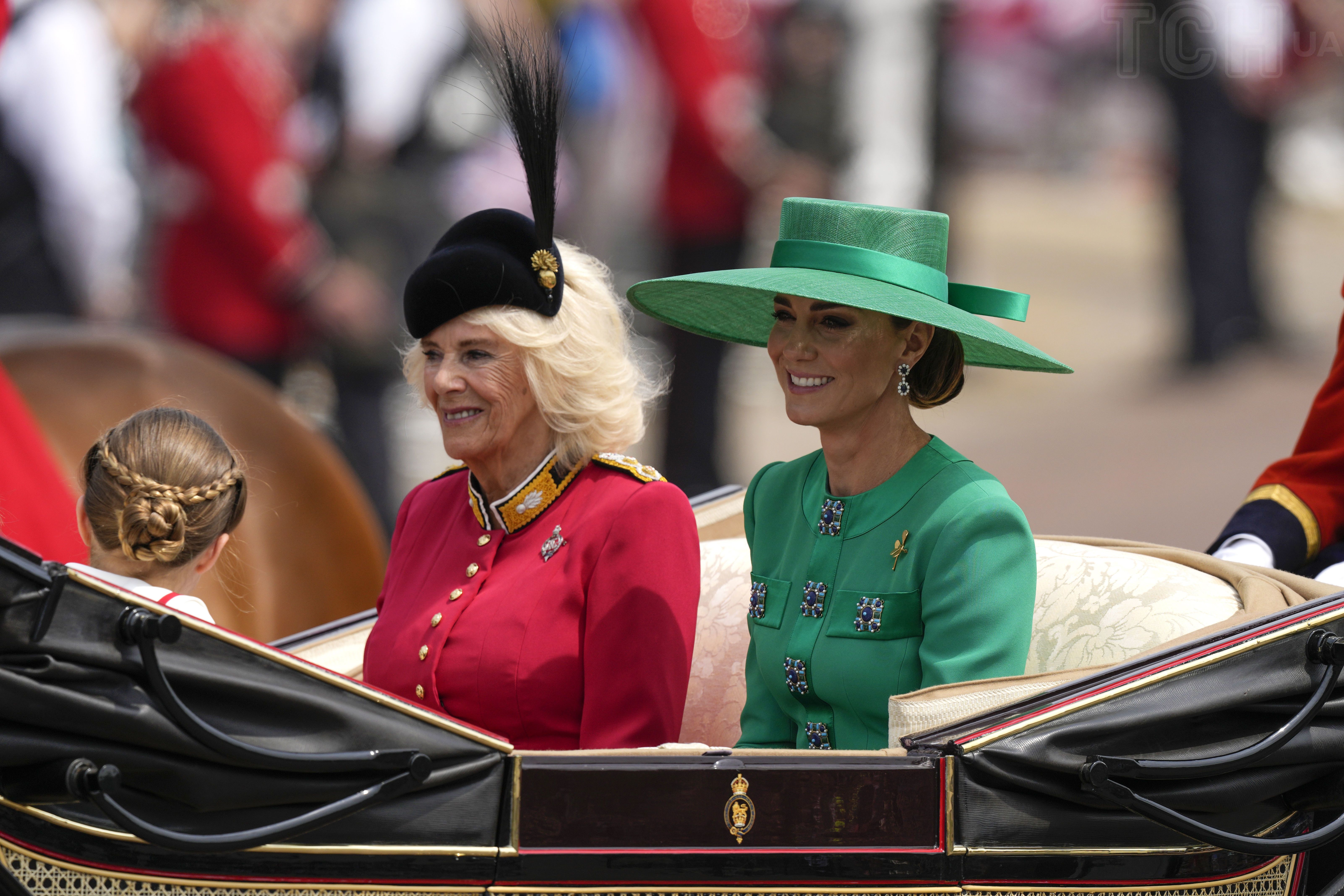 Королева Камілла взяла участь у параді Trooping The Color, який відбувся на честь офіційного дня народження її чоловіка, короля Чарльза III, у Лондоні.